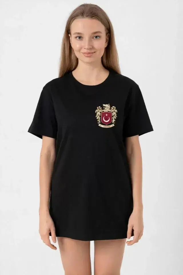Turk Gerbi bosilgan qora futbolka | Milliy iftixor, zamonaviy dizayn!