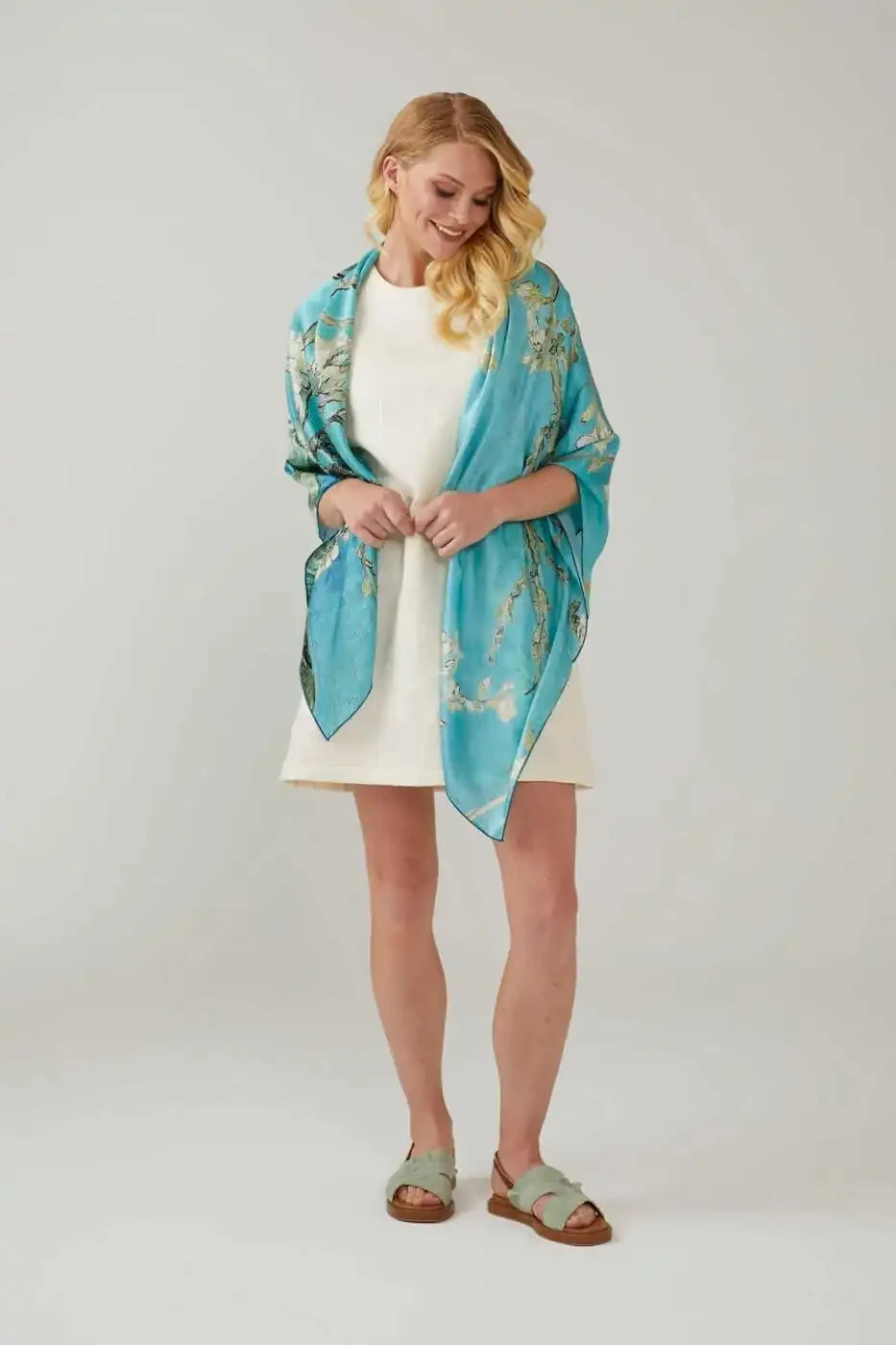 Van Goghning maftunkor asarlaridan ilhomlanib yaratilgan bu ajoyib shol, yangi mavsumning eng diqqatga sazovor qismlaridan biri bo'lishga da'vogar. Yorqin turkuaz rangi va bodom gullarining nafis naqshlari har qanday kiyimga o'ziga xos hashamat va nafislik baxsh etadi.