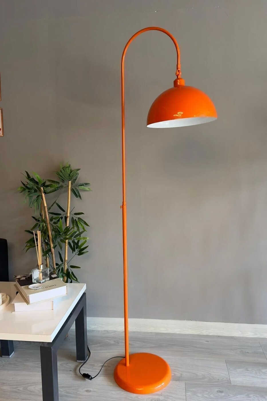 Metal gövdesi sağlamlık ve dayanıklılık sunarken, turuncu rengi enerji ve canlılık katıyor. Oturma odanızda, çalışma odanızda veya yatak odanızda kullanabileceğiniz bu lambader, okuma, çalışma veya dinlenme anlarınızı daha keyifli hale getirecek.
