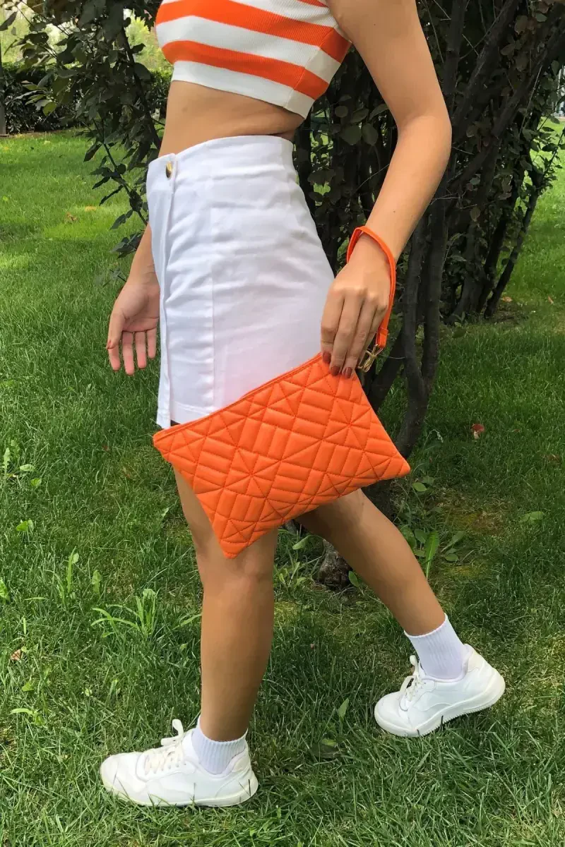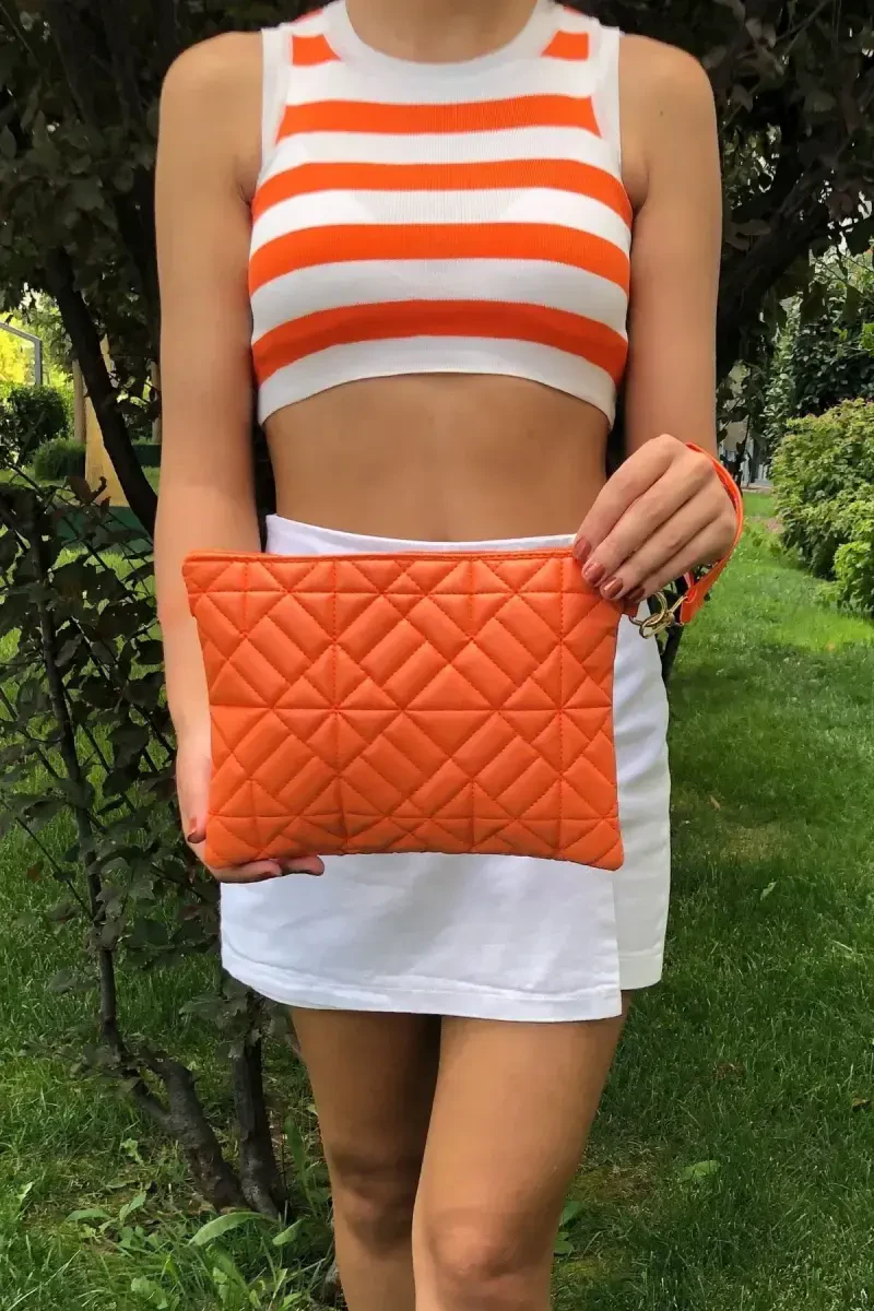 Bagfonining diqqat bilan ishlab chiqilgan apelsin naqshli portfel clutch sumkasi, uslubli ayollarning ajralmas qismiga aylanishga nomzod. Ushbu noyob sumka o'zining zamonaviy dizayni va yorqin to'q sariq rangi bilan har qanday kombinatsiyangizga energiya qo'shadi. Sun'iy teridan yasalganligi sumkaning ham bardoshli, ham zamonaviy ko'rinishini ta'minlaydi. Uzoq umr ko'rishni va'da qiluvchi ushbu material kundalik hayot qiyinchiliklariga chidamli bo'lib, sumkangizning birinchi kundagidek qolishini ta'minlaydi.Geometrik naqshlar sumkaga zamonaviy va trendli havo beradi, shu bilan birga sizning g'ayrioddiy uslubingizni namoyish etishga yordam beradi. Ushbu naqshlar sumkaning diqqatga sazovor bo'lishini ta'minlab, har qanday muhitda farq qilishingizga imkon beradi. Kundalik foydalanishda ham, maxsus tadbirlarda ham ushbu clutch sumkasi bilan uslubingizni to'ldirishingiz mumkin.Kundalik foydalanishga mos dizayni tufayli ushbu sumka har qanday kiyim bilan osongina mos keladi. Xoh u jinsi va futbolka kombinatsiyasini jonlantiring, xoh uni zamonaviy ko'ylak bilan ishlating, bu sumka har doim uslubingizni bir qadam oldinga olib chiqadi. Tasodifiy muhitda ko'zni qamashtiruvchi aksessuar sifatida ajralib turadigan ushbu sumka hatto oddiy kombinatsiyalaringizga ham darhol nafislik qo'shadi.Naqshli tuzilishi sumkaning nafaqat estetik, balki funktsional bo'lishini ham ta'minlaydi. Ichidagi narsalaringizni tartibli ravishda olib yurishingizga imkon beradigan keng ichki hajmi tufayli siz telefondan tortib hamyoningizgacha, kosmetikadan kalitlargacha bo'lgan barcha narsalarni yoningizda saqlashingiz mumkin. Portfel sumka formati qulay foydalanishni ta'minlaydi, shu bilan birga zamonaviy ko'rinishidan ham voz kechmaydi.O'lchamlari (25x19 sm) bilan cho'ntagingizga sig'adigan ixcham va etarli joyga ega bo'lish uchun mo'ljallangan. Shu tarzda siz sumkani osongina olib yurishingiz va kerak bo'lganda osongina foydalanishingiz mumkin. Ideal o'lchamlari ham qulaylik, ham tashish qulayligi nuqtai nazaridan mukammal muvozanatni ta'minlaydi. Apelsin rangi energiya bilan to'lgan va diqqatga sazovor ko'rinishni taqdim etsa, naqshli tuzilishi sumkaga boshqa o'lcham beradi. Ushbu sumka bilan siz ham zamonaviy, ham amaliy tajribaga ega bo'lasiz.