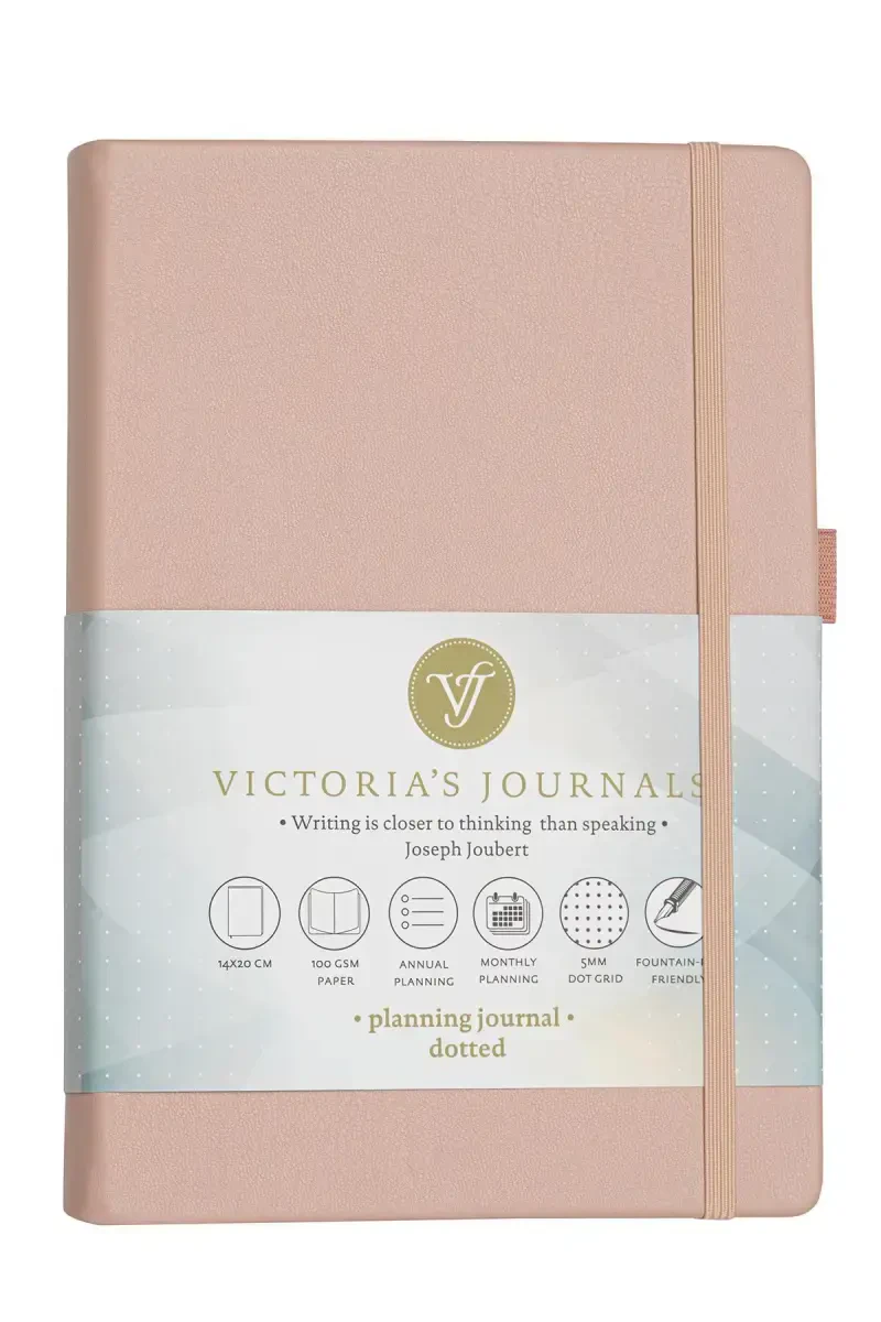 Victoria's Journals Sert Kapaklı Noktalı Defter ile yazmanın ve planlamanın keyfine varın! Bu zarif ve kullanışlı defter, günlük notlarınızdan karmaşık planlarınıza kadar her türlü ihtiyacınızı karşılamak üzere tasarlandı. 14x20 cm boyutu, onu yanınızda taşımak için ideal hale getirirken, pembe rengi ve şık tasarımı ile tarzınızı yansıtmanıza olanak tanır. Sert kapak, defterinizin uzun ömürlü olmasını sağlarken, lastikli kapanış ise içindeki notlarınızı güvende tutar. İster bir bullet journal tutun, ister sadece düşüncelerinizi kağıda dökmek isteyin, bu defter sizin için mükemmel bir yol arkadaşı olacak. Victoria's Journals kalitesiyle üretilen bu defter, sadece bir not defteri değil, aynı zamanda bir yaşam tarzı ifadesidir.İçerisindeki 192 sayfa (96 yaprak) yüksek kaliteli, 100 gram krem rengi kağıt, dolma kalem dahil tüm yazı gereçleri ile mükemmel bir uyum sağlar ve mürekkebin dağılmasını önler. Noktalı sayfalar, yazarken ve çizerken size özgürlük tanırken, LAY-FLAT teknolojisi sayesinde defterinizi 180 derece açabilir ve her sayfasına kolayca erişebilirsiniz. Süresiz yıllık ve aylık planlama sayfaları, zamanınızı verimli bir şekilde yönetmenize yardımcı olurken, iki adet ayraç sayesinde önemli sayfalarınızı kolayca bulabilirsiniz. Özel kalem bölmesi, kaleminizin her zaman elinizin altında olmasını sağlarken, şık lastiği ve çift bölmeli cebi ile küçük notlarınızı ve kartlarınızı güvenle saklayabilirsiniz.Victoria's Journals Sert Kapaklı Noktalı Defter, sevdikleriniz için de düşünülmüş şık bir hediye seçeneğidir. Basit, sofistike ve kullanışlı tasarımı ile herkesin beğenisini kazanacak olan bu defter, günlük tutmak, not almak, eskiz yapmak veya plan yapmak için mükemmel bir araçtır. Pembe rengi ve vegan deri kaplaması, deftere ayrı bir zarafet katarken, Victoria's Journals kalitesi uzun süreli kullanım imkanı sunar. Bu defterle, yazmanın keyfini çıkarırken aynı zamanda tarzınızı da yansıtabilirsiniz. Kendinize veya sevdiklerinize bu özel defteri hediye edin ve yaratıcılığınızı özgür bırakın! Victoria's Journals ile yazmak sadece bir eylem değil, bir deneyimdir.