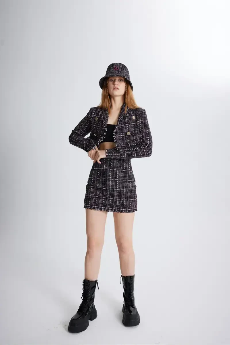 Твидовая Мини Юбка Черная | Стильная & Удобная Женская Юбка Модель