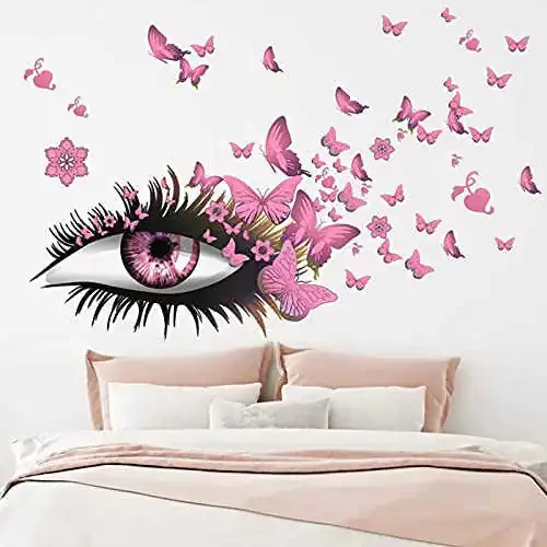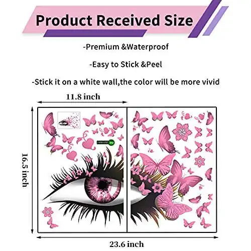 Добавьте немного волшебства в ваш домашний декор с помощью этих красивых наклеек с глазами девочки. Украшенные розовыми летящими бабочками и длинными ресницами, эти наклейки - идеальный вариант декора для спален девочек, гостиных или любого пространства. Эта наклейка на стену также может быть романтичным подарком для пар, добавляя теплоту и яркость вашей комнате.