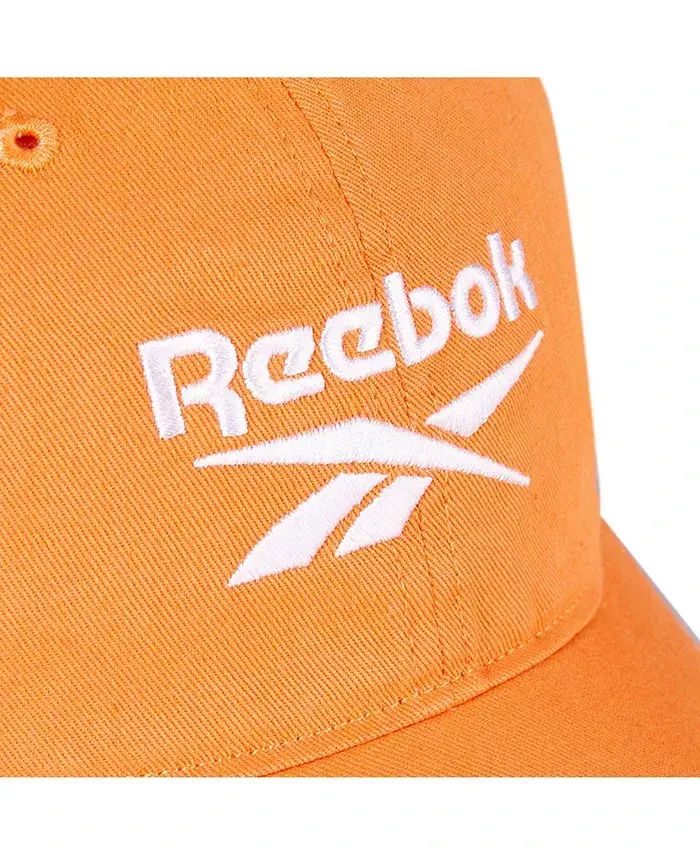 The ideal finish to your sporty look, this twill logo cap from Reebok is chock full of desirable features including an adjustable back and a Speedwick sweatband. 10" x 8" x 4-1/2" Low profile front panel Medium curved brim Adjustable metal buckle closure Speedwick sweatband Embroidered logo at front 100% cotton Spot clean Imported