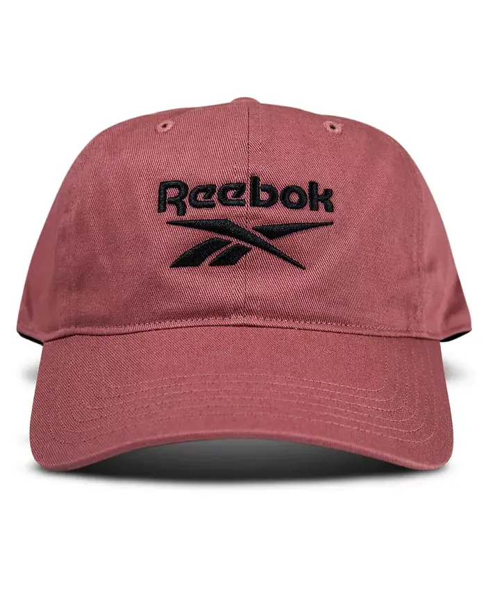 The ideal finish to your sporty look, this twill logo cap from Reebok is chock full of desirable features including an adjustable back and a Speedwick sweatband. 10" x 8" x 4-1/2" Low profile front panel Medium curved brim Adjustable metal buckle closure Speedwick sweatband Embroidered logo at front 100% cotton Spot clean Imported