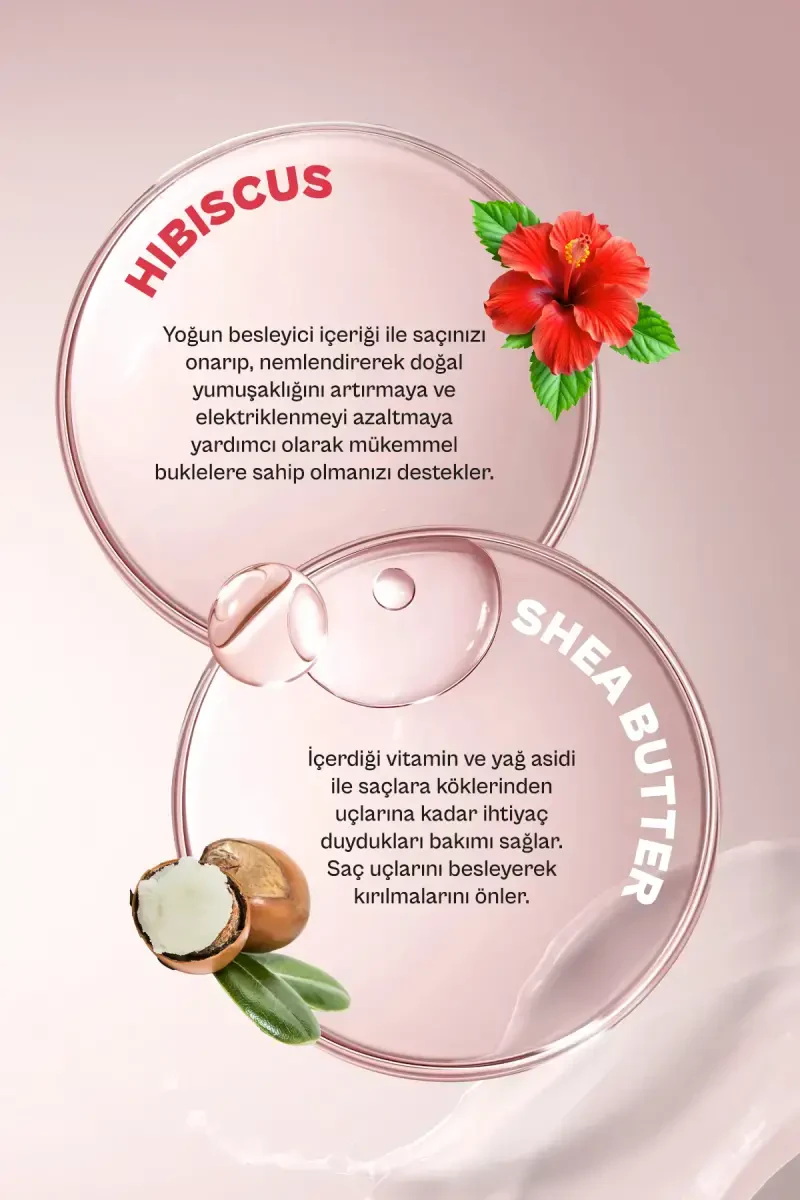 Экстракт цветков гибискуса известен тем, что стимулирует рост волос, уменьшает выпадение волос и усиливает блеск волос. Масло ши увлажняет, смягчает и защищает волосяные волокна от ломкости, делая ваши волосы более здоровыми.