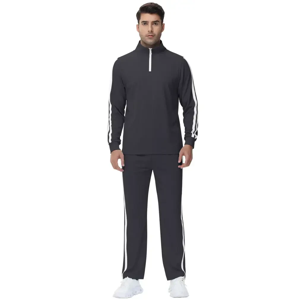 Elevate your style and performance with the Tyhengta Men's Athletic Tracksuit Set! This stylish and functional 2-piece tracksuit will be with you everywhere, from your daily routine to the gym. Made from a 96% polyester and 4% spandex blend, this tracksuit combines breathability and comfort. Its lightweight design won't restrict your movement, while its durable construction ensures long-lasting use. With its 1/4 zip top and comfortable-fit pants, it's the perfect combination for both the gym and everyday life. Its sleek charcoal grey color easily complements any outfit. Complete your sporty look without sacrificing comfort. Whether you're running, working out at the gym, or engaging in daily activities, the Tyhengta Men's Athletic Tracksuit Set offers optimal comfort and freedom of movement. It provides a perfect fit with its elastic waistband and adjustable drawstring detail. Two zippered pockets allow you to carry your personal belongings securely. This tracksuit is not just clothing; it's a style statement that adapts to your lifestyle. With its high-quality material and stylish design, the Tyhengta Men's Athletic Tracksuit Set is the perfect choice for men with an active lifestyle. Order now to feel comfortable and stylish!