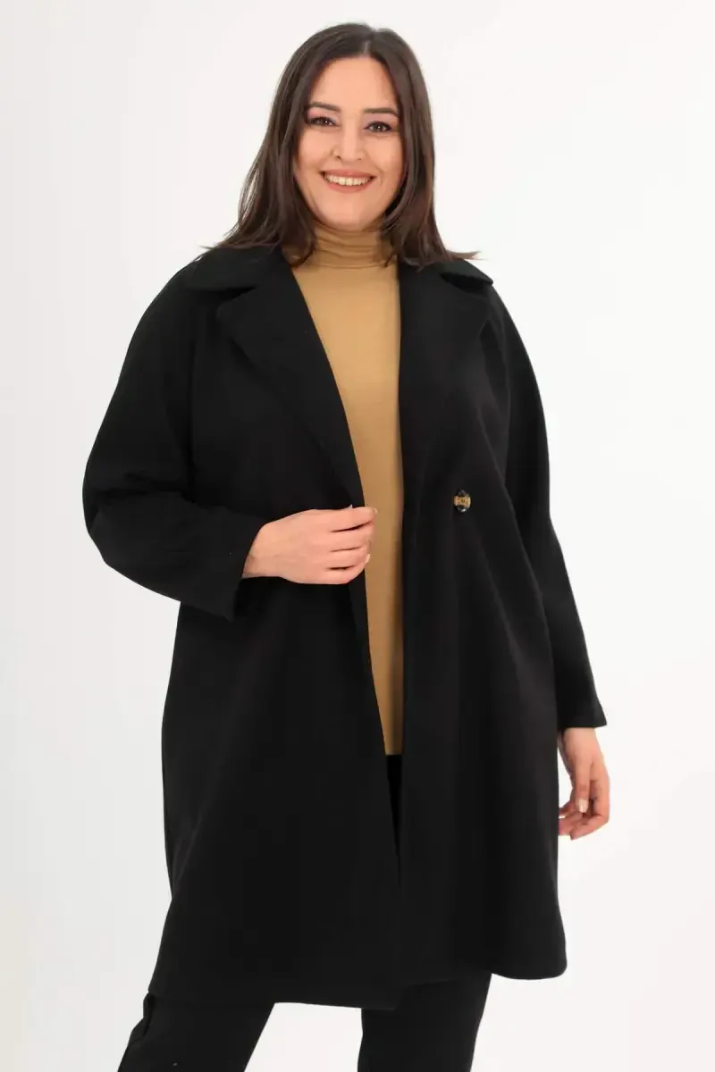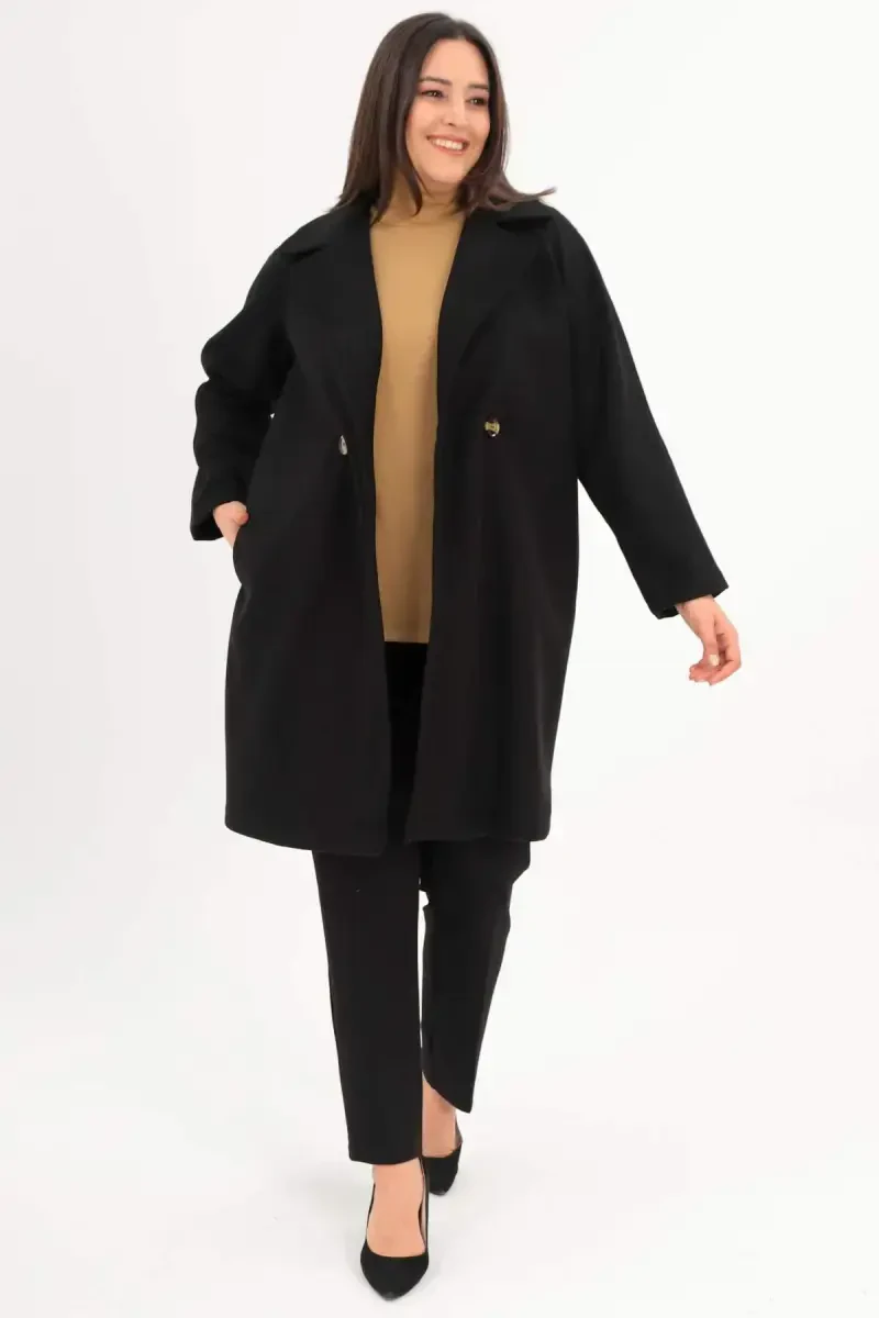 пальто большого размера, кашемировое пальто, черное пальто, пальто с пуговицами, modazone