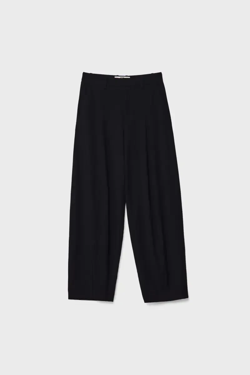Тщательно продуманные декоративные строчки усиливают элегантность этих брюк, а мешковатый крой максимизирует свободу движений. Мешковатый крой, обеспечивающий свободный покрой, гарантирует комфорт на протяжении всего дня. Декоративные строчки придают брюкам современный и изысканный вид.