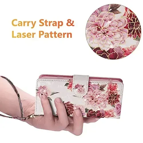UEEBAI Samsung Galaxy S23 5G Wallet Case: White Floral Patterned Elegance and Security in One!Are you looking for a stylish and functional protection for your Samsung Galaxy S23 5G device? The UEEBAI Wallet Case will more than meet your expectations with its elegant design, superior protection features and practical usage details! The white floral embossed print adds a unique touch to your device, while the PU leather material offers long-lasting use.This case not only protects your phone, but also makes your daily life easier. Thanks to the built-in card slots, you can always carry your credit cards, IDs and other important cards with you. The RFID (Radio Frequency Identification) blocking feature prevents your card information from falling into the hands of unauthorized persons, maximizing your security.Ideal for watching movies or making video calls, the built-in stand feature allows you to fix your phone at any angle. The wrist strap provides a more secure grip when carrying your phone and reduces the risk of dropping it. The magnetic closure ensures that the case closes securely, while also making it easy to open.UEEBAI Wallet Case is not just a phone case, but also a lifestyle accessory. Combining style, functionality and security, this case will both protect your Samsung Galaxy S23 5G device and reflect your style.