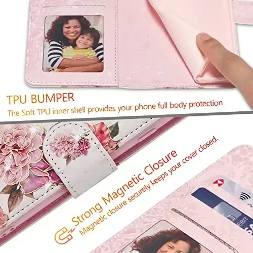 Protect your phone and reflect your style with the UEEBAI Wallet Case specially designed for the Samsung Galaxy S25 Plus 5G. This elegant case not only keeps your phone safe but also offers practical features to make your daily life easier. With its stylish design and useful functions, the UEEBAI Wallet Case is an ideal choice for Samsung Galaxy S25 Plus 5G users. The UEEBAI Wallet Case provides full protection against scratches, bumps, and drops thanks to its high-quality PU leather and soft TPU inner lining. The elegant flower pattern processed with embossing carving technology gives your case a unique and attractive look. The white flower detail turns the case from just a protective accessory into a stylish fashion statement. This useful case is equipped with 3 card slots and 1 cash compartment. This way, you can always carry your credit cards, ID and cash with you. Thanks to RFID blocking technology, your card information is protected against unauthorized access, so you feel safe. The UEEBAI Wallet Case ensures that your phone stays securely closed thanks to its magnetic closure feature. The strong magnet allows the case to be opened and closed easily, while preventing your phone from accidentally falling. The durable hand strap makes it easy to carry your phone on your wrist and reduces the risk of dropping it. Thanks to the adjustable stand feature, watching videos, listening to music or surfing the internet becomes much more enjoyable with the UEEBAI Wallet Case. The stand offers hands-free use by fixing your phone at the desired angle. Precise cutouts and responsive buttons provide easy access to all ports, cameras, speakers and microphones. The UEEBAI Wallet Case is both a stylish and functional solution for your Samsung Galaxy S25 Plus 5G phone. It offers practical features that will make your daily life easier while keeping your phone safe. With its stylish design, high-quality materials and useful functions, the UEEBAI Wallet Case is an indispensable accessory for Samsung Galaxy S25 Plus 5G users. Please make sure to choose your phone model/size correctly before purchasing.