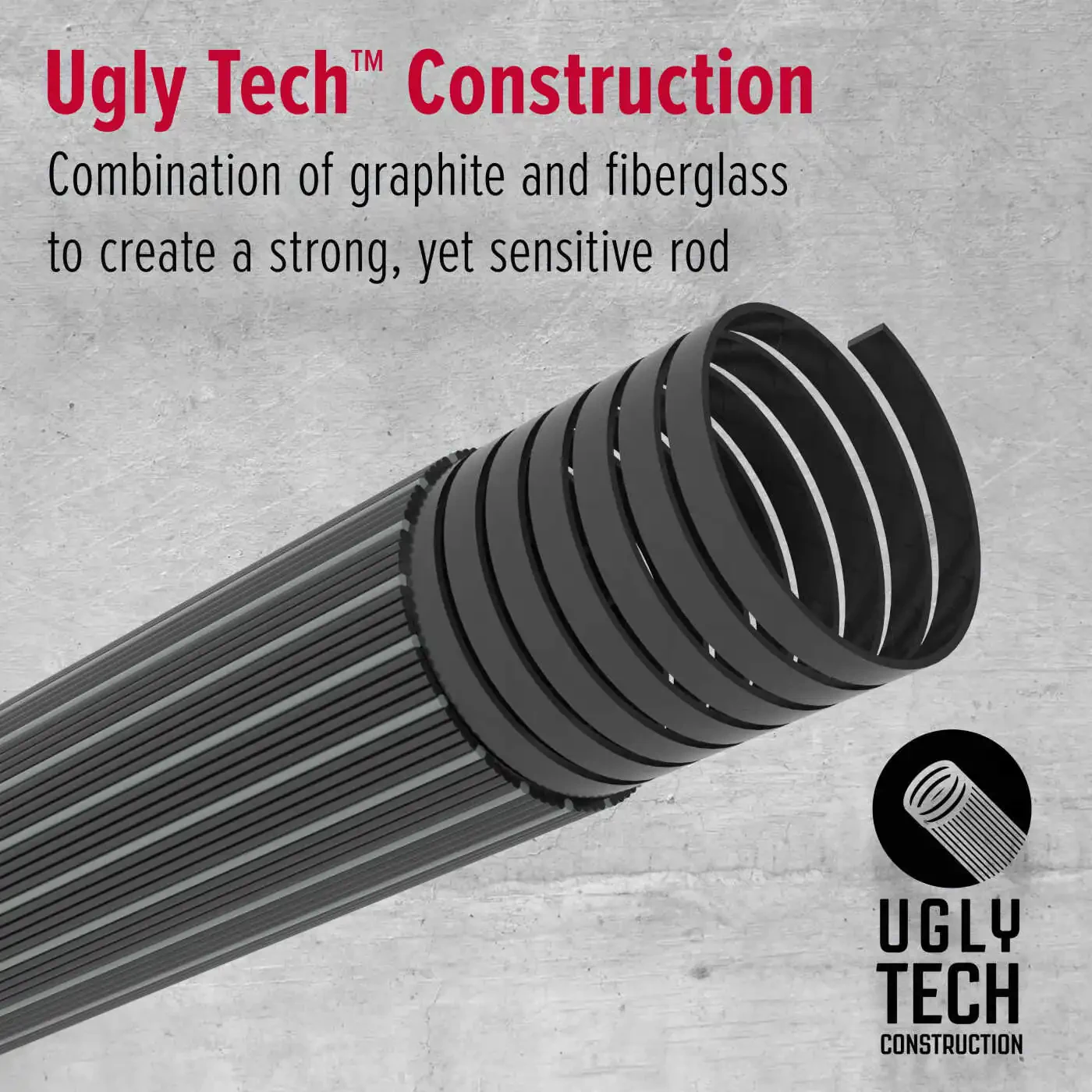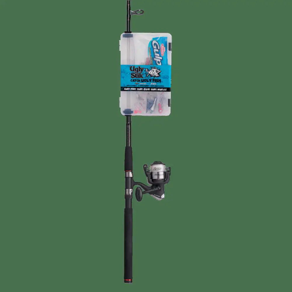 The Ugly Stik 7' Catch Ugly Fish Surf Pier Fishing Rod and Reel Spinning Combo offers everything you need for surf and pier saltwater fishing. It's purpose-built with the Ugly Stik GX2, delivering legendary Ugly Stik toughness with improved balance and a modern look. Ugly Tech construction and Ugly Tuff stainless steel guides provide exceptional durability and eliminate line tangling. Includes a variety of Berkley baits and tackle to help you get started on your fishing adventure. Fishing has gotten too fancy. Scratchless, shiny boats with nuclear-powered engines. Fishing rods that act like show ponies, not bare-knuckle brawlers. Pictures of fish taken for 'likes' instead of refrigerator doors. It's time to get back to fishing the way it should be, with a tough, durable combo built to provide ten big fish pictures for every one of a dude in skinny jeans holding a fingerling, with a stylish rod. It's time to fish ugly. This combo offers the perfect combination of durability and performance. The Ugly Stik GX2 graphite and fiberglass blended blank provides an incredible balance of strength and sensitivity. This means you don't have to worry about it breaking, even when reeling in big fish. The Ugly Tuff guides are corrosion-resistant and ensure your fishing line flows smoothly, so you can cast further and catch more fish. The reel comes pre-spooled with line, so you can start fishing right away. Its lightweight and balanced design prevents fatigue, even when fishing all day long. This combo is an excellent choice for both beginners and experienced anglers. It's durable, reliable, and affordable. So what are you waiting for? Grab an Ugly Stik and start fishing ugly today!