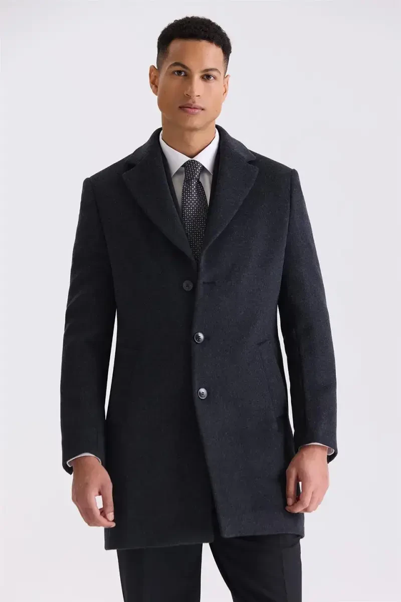 Угольно-серое пальто из шерстяного кашемира: сочетание элегантности и тепла