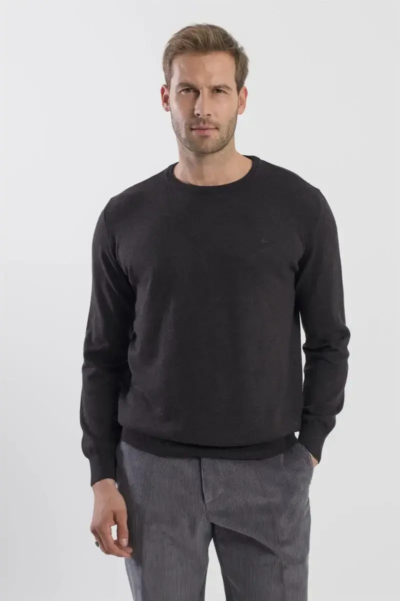 Вневременная элегантность: антрацитовый трикотажный свитер с круглым вырезом и облегающим кроем