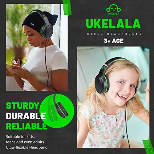 UKELALA Green Wired Headphones - идеальный выбор для школы, авиаперелетов, поездок и повседневного использования. Благодаря легкому и портативному дизайну они идеально подходят для детей. Конструкция накладных наушников блокирует внешний шум и позволяет наслаждаться музыкой с чистым звуком. Они также поставляются с разъемом 3,5 мм для совместимости с вашим устройством.