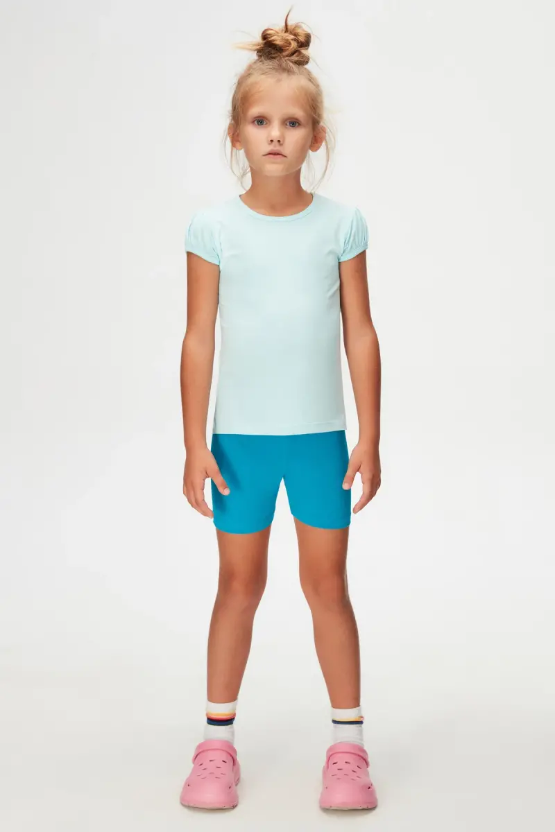 Бирюзовая базовая футболка с круглым вырезом и рукавами-фонариками для девочек от Lovetti станет незаменимой вещью в летнем гардеробе вашей девочки. Эта футболка сочетает в себе комфорт и стиль, позволяя детям свободно двигаться, но в то же время выглядеть стильно. Трикотажный материал делает футболку дышащей, что сводит к минимуму потоотделение, особенно в жаркие летние дни, и помогает коже оставаться комфортной. Благодаря стандартному крою футболка идеально сидит по фигуре, не стесняет движений и позволяет детям чувствовать себя комфортно в течение всего дня.Простой дизайн позволяет легко сочетать футболку с разной одеждой. Она совместима со всеми видами нижней одежды, от юбок до брюк, от шорт до леггинсов, что позволяет создавать разные стили. Круглый вырез придает футболке современный вид и позволяет детям легко ее надевать и снимать. Короткие рукава - идеальный выбор для летней жары. Деталь рукава-фонарика придает футболке неповторимый и стильный вид.Светлый бирюзовый цвет придает футболке живой и энергичный вид. Этот цвет отражает радость и живость летних месяцев и помогает детям излучать позитивную энергию. Эта футболка, тщательно подготовленная командой экспертов-дизайнеров Lovetti, предлагает стиль, подходящий для любых повседневных занятий. Ее можно с комфортом носить в любых условиях, будь то встречи с друзьями, игры в парке или поездки на отдых.Lovetti известна как бренд, который отдает предпочтение качеству и комфорту в одежде для девочек. Эта футболка является отражением этого понимания Lovetti. Футболка изготовлена из высококачественных материалов, отличается долговечностью и не изнашивается. Таким образом, ваши дети могут с удовольствием носить футболку в течение длительного времени. Эта футболка от Lovetti - идеальный выбор для родителей, которые ищут одновременно стильный и удобный вариант. Закажите этот уникальный продукт от Lovetti прямо сейчас и добавьте стиля в гардероб своей дочери!