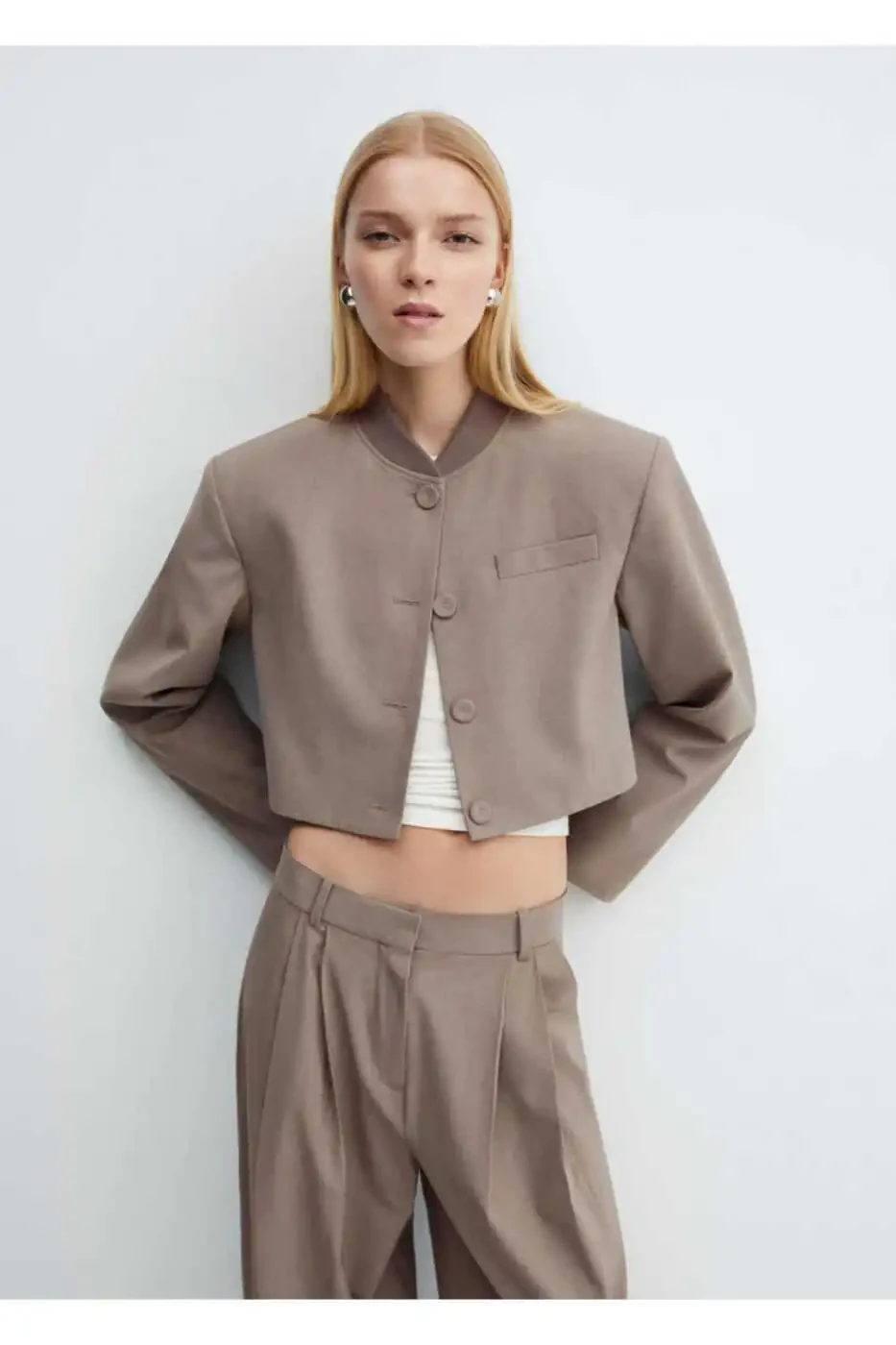 **Укороченная куртка на пуговицах**Наша укороченная куртка на пуговицах - это незаменимая вещь, сочетающая в себе практичность и стиль. Ее простой дизайн с рисунком, который подходит к любой комбинации, и классическая застежка на пуговицы создают вневременный образ.Подкладка, длинные рукава и удлиненный крой идеально защищают и придают элегантность в переходные сезоны. Легкий и нежный тюлевый тип плетения подчеркивает изящество куртки. Трикотажный тип ткани обеспечивает гибкость и свободу движений.Благодаря обычному крою она адаптируется к линиям вашего тела, обеспечивая удобную посадку. Благодаря своей стандартной длине она подходит для разных типов телосложения и подходит для всех возрастных групп.Благодаря карманам, предназначенным для переноски ваших повседневных вещей, куртка практична, а ее простой и стильный стиль хорошо сочетается с любой комбинацией.**Характеристики:*** Ткань: Тюль* Фасон: Обычный* Воротник: На пуговицах* Рукава: Длинные* Карманы: Боковые карманы* Подкладка: Да* Рисунок: Простой* Сезон: Переходные сезоны