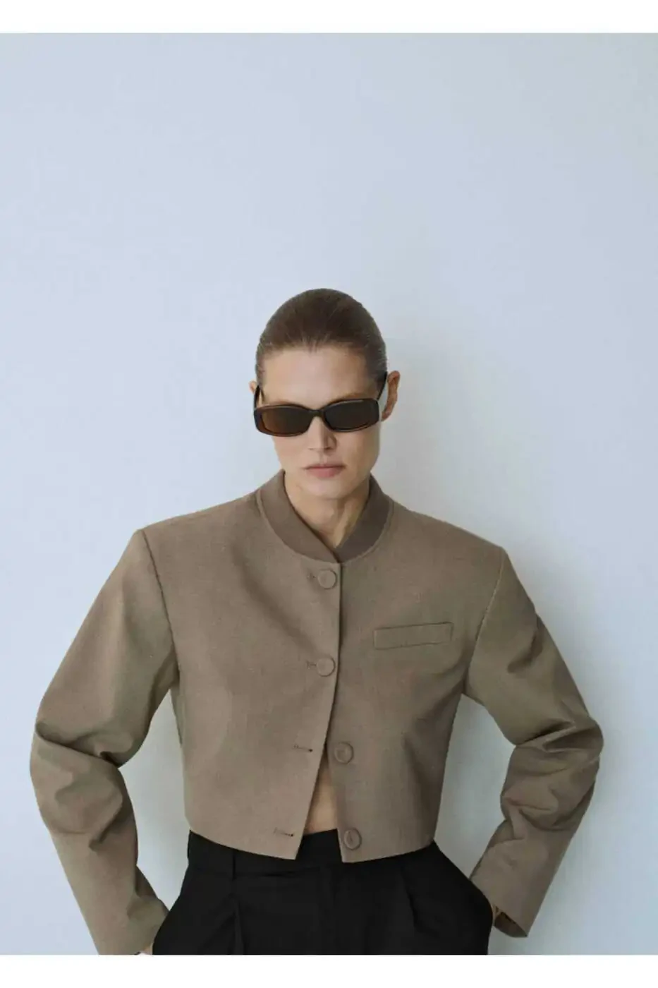 Укороченная куртка на пуговицах, укороченная куртка, куртка на пуговицах, стильная куртка, практичная куртка