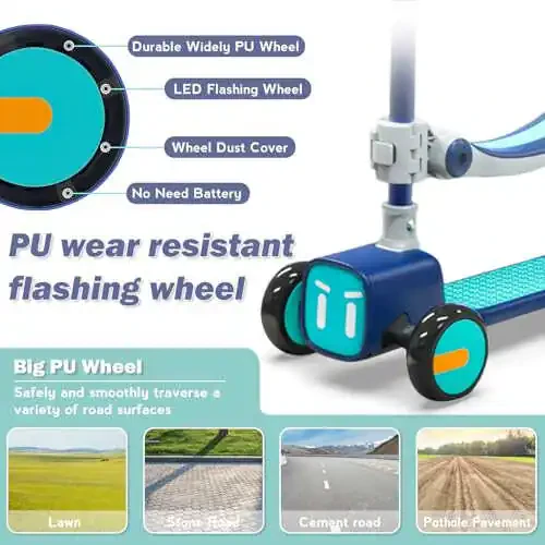 2si 1da Bolalar Skuteri: 3-8 Yosh, Sozlanishi Mumkin Boʻlgan Balandlik, Sirpanmaydigan Zamin. Xavfsiz Boshlangʻich Skuteri