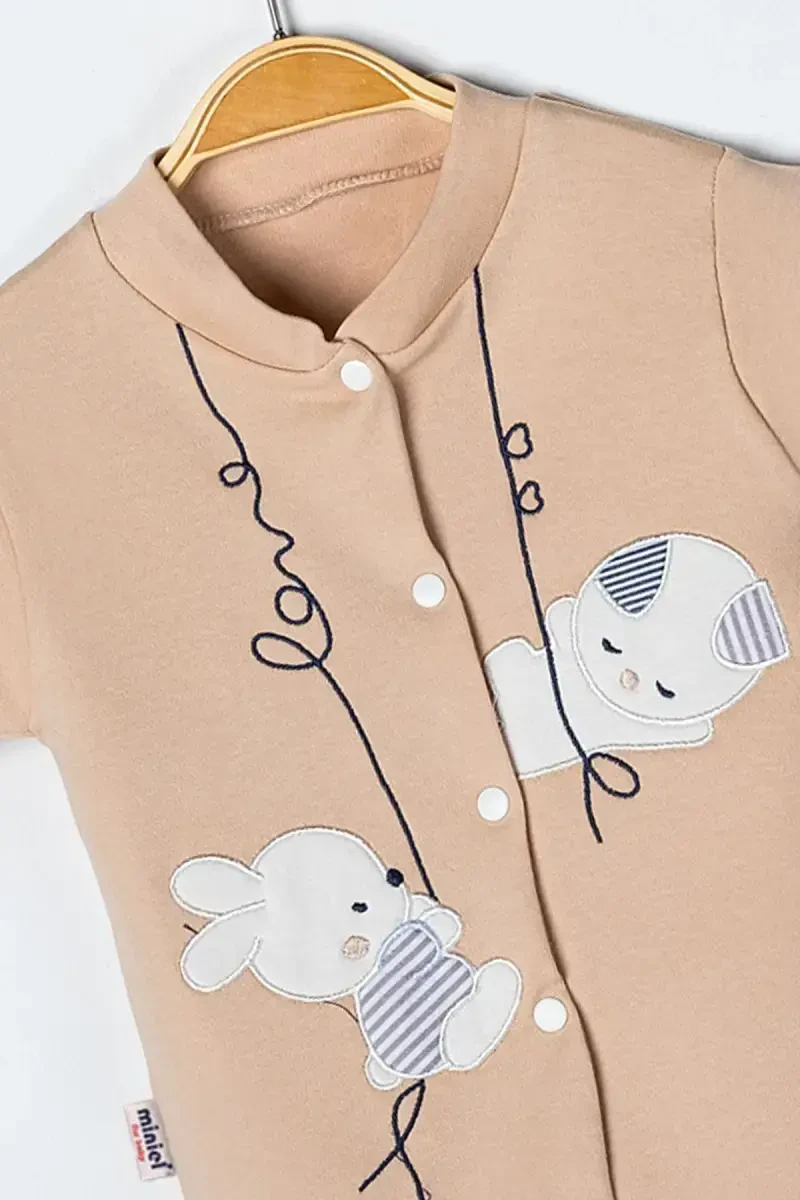 Детский комбинезон Органический хлопок Бежевый | С вышивкой зайчика с закрытыми ножками 3-9 месяцев