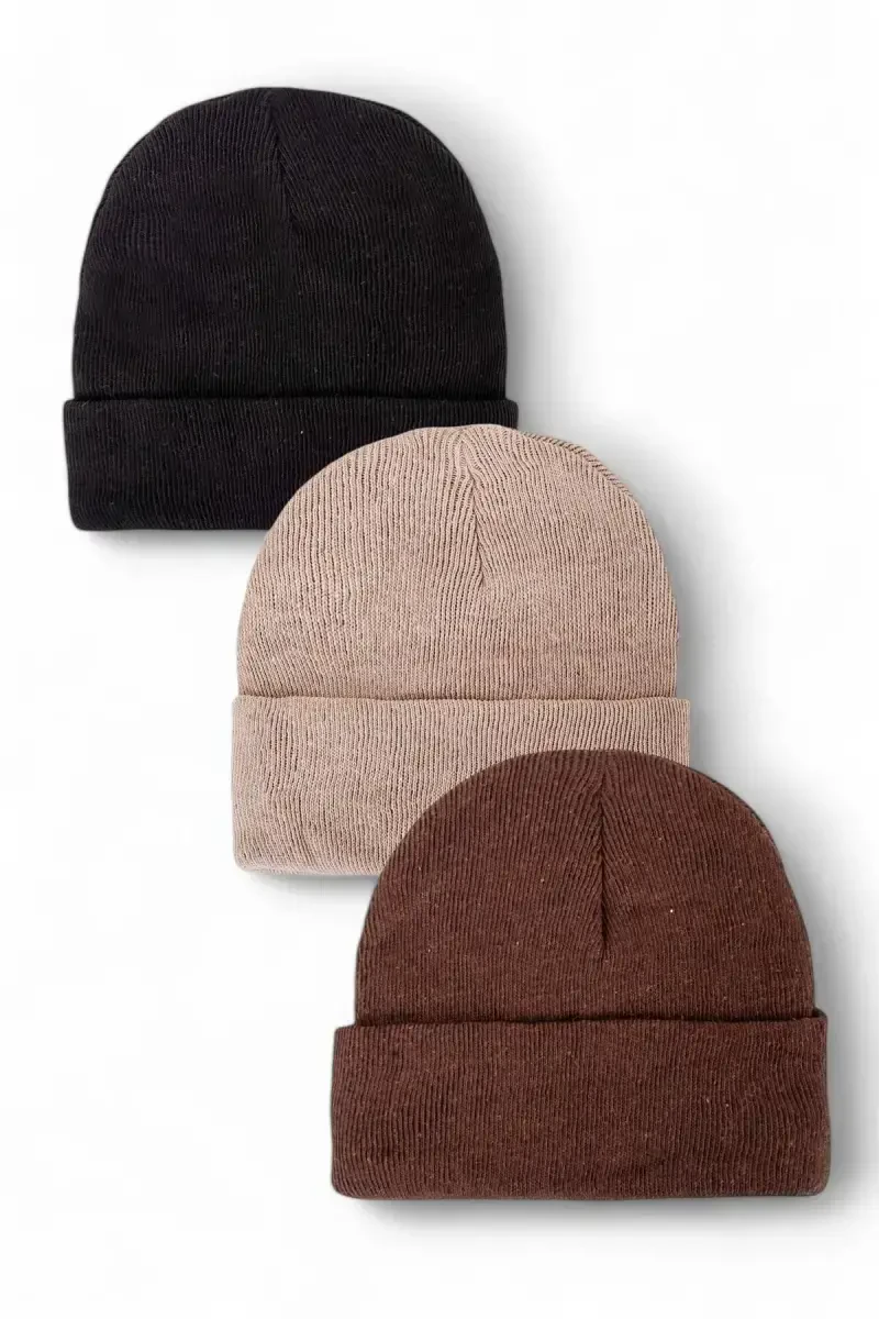 Унисекс Складной Набор Шапок | Черный, Белый, Серый | 100% Акрил | EKE TEKSTİL