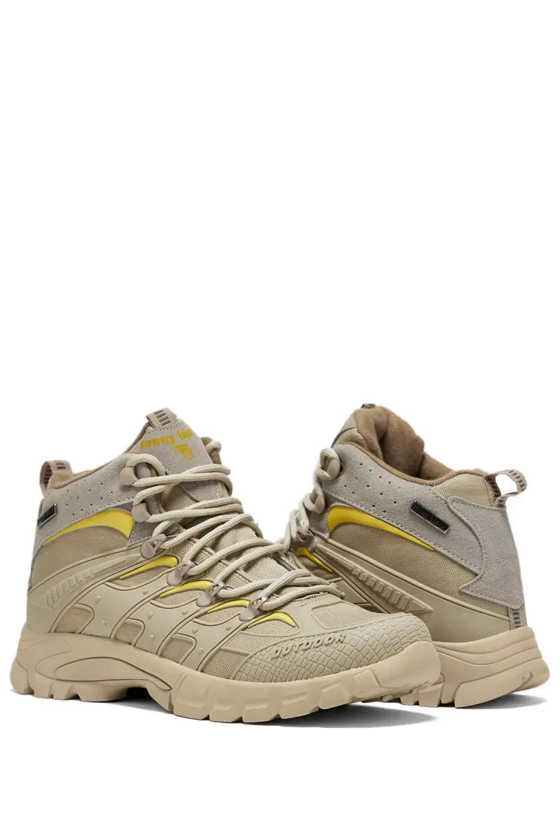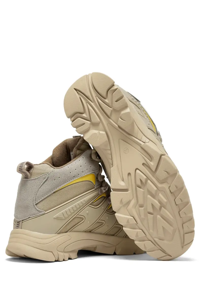 Unisex Bej Sarı Rahat Kalıp Suı İtici Özellikli Bağcıklı Unisex Bot-Bej Sarı