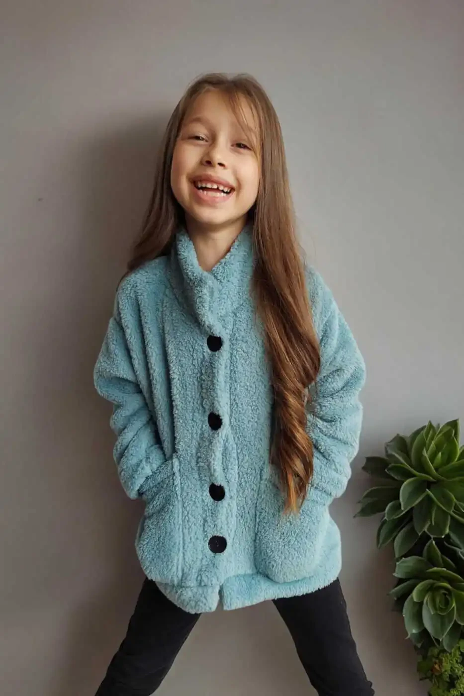 Unisex Bolalar Yashil Plush Ko'ylagi: Uslub va Issiqlik Birlashtirilgan!