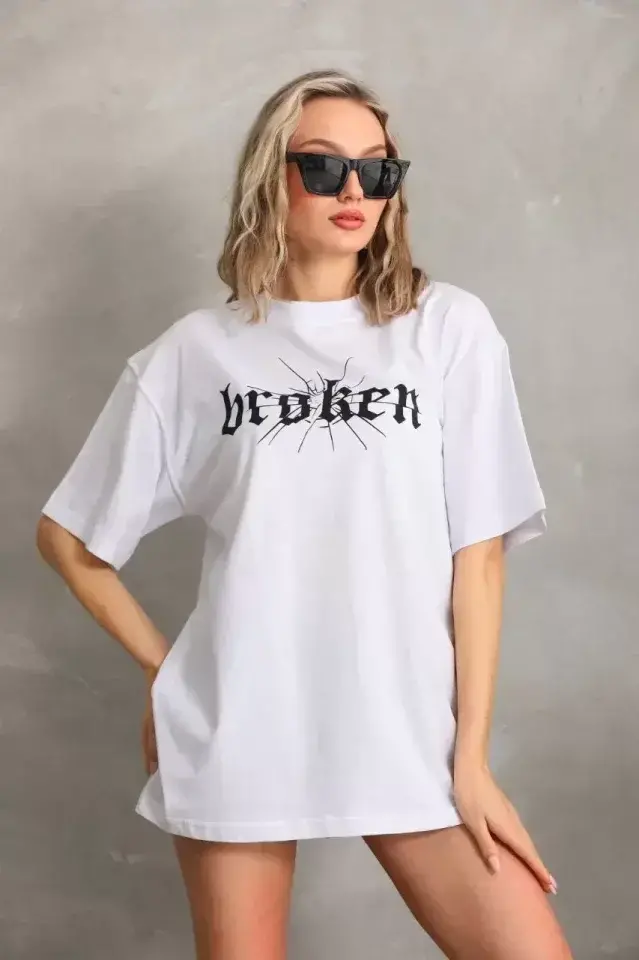 Paxta matodan ishlab chiqarilgan. Dumaloq yoqali. Qisqa yengli. Oversize bichimga ega. Bosmali.