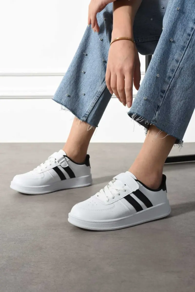 Unisex Comfortable Sports Shoes Daily Sneaker Model-White BLACK_20, offered with JUHR assurance, is a stylish and comfortable option designed for your daily use. This sneaker attracts attention with its unisex design that appeals to both women's and men's styles. It is ideal for those who like simplicity and are looking for a modern look at the same time. The model adopts the classic slip-on style, offering the ability to be easily put on and taken off, and provides practicality in your busy days. The faux leather lining ensures that your foot is comfortable all day long, while minimizing perspiration and moisture formation, protecting your foot health. The faux leather material used on the outer surface of the shoe stands out with its durability and easy cleanability. In this way, you can use your shoes as if they were new for a long time. The PVC sole provides a secure grip on different surfaces, reducing the risk of slipping and adding confidence to your steps. The model is made of organic materials, allowing you to make an environmentally friendly choice. Designed in accordance with the concept of sustainable fashion, this sneaker reflects your style and supports your awareness of protecting nature. This design, which adapts to the energy of young and dynamic individuals, ensures that you attract attention in any environment. Whether on your daily walks, meeting with friends, or exploring the city, this sneaker will accompany you. Its short heel (1 - 4 cm) both preserves your elegance and offers a comfortable experience throughout the day. The flat heel design increases your stability and reduces the feeling of fatigue. In this way, you will not feel pain or discomfort in your feet even if you stand for long hours. Unisex Comfortable Sports Shoes Daily Sneaker Model-White BLACK_20 is manufactured in Turkey and produced in accordance with quality standards by taking advantage of local production advantages. Thanks to its boxed packaging, it is a great gift option for yourself and your loved ones. This sneaker, which can be worn comfortably in all seasons, offers a style independent of seasonality and accompanies you in all kinds of weather conditions. This sneaker, which will be an indispensable part of your wardrobe, can be easily combined with any outfit and completes your style.