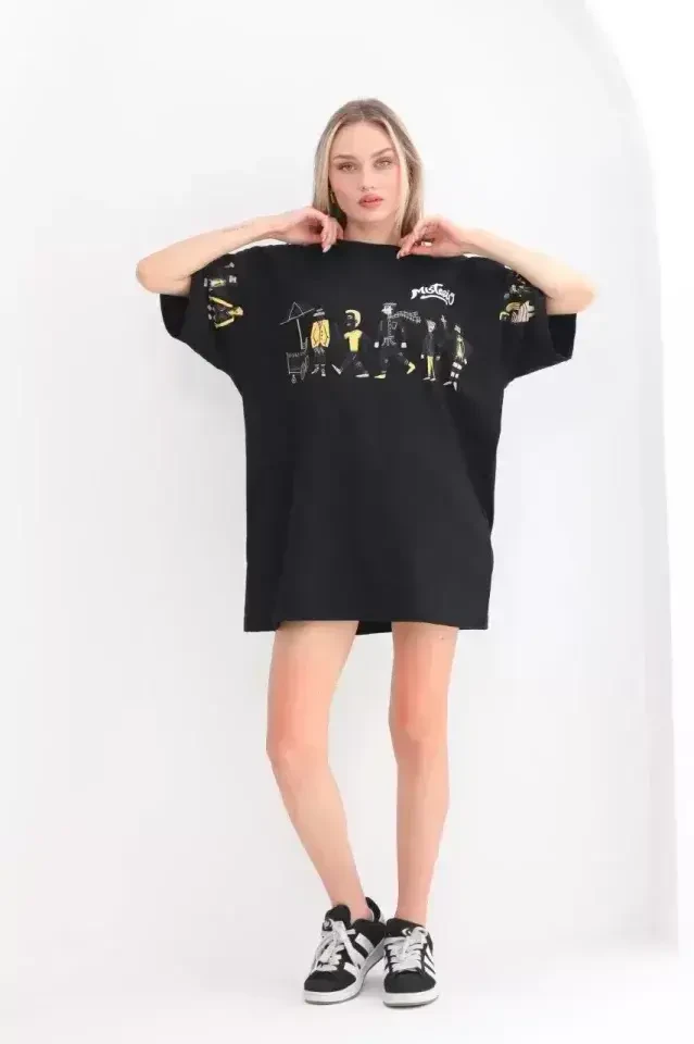 Unisex Crew Neck Printed Oversize T-Shirt - Black is a must-have piece in both women's and men's wardrobes, combining comfort and elegance. Thanks to its cotton fabric, it offers all-day comfort, while its oversize cut provides a modern and trendy look. The print on it adds originality to your style, while the crew neck detail offers a classic touch. This t-shirt, which you can easily prefer in any environment from daily use to special events, is the easiest way to reflect your style.Product DescriptionUnisex Crew Neck Printed Oversize T-Shirt - Black has a design that keeps both comfort and elegance in the foreground, keeping up with the dynamics of modern life. This t-shirt allows your skin to breathe thanks to its high-quality cotton fabric and provides a comfort that lasts all day. The oversize cut gives your body a nice silhouette without restricting your freedom of movement. The crew neck detail offers a classic touch, while the unique print design allows you to add a personal touch to your style. The noble and timeless color of black creates a perfect base for all kinds of combinations. Whether you want to show off your elegance in your daily activities, when meeting with your friends, or at special events, this t-shirt will be an indispensable part of your wardrobe. Designed in accordance with the oversize fashion, which has become increasingly popular in recent years, this product is highly appreciated by young people and adults. The natural structure of cotton fabric does not irritate your skin and minimizes the risk of allergic reactions. Therefore, it is also an ideal choice for those with sensitive skin. It is important to follow the washing instructions for the t-shirt to last a long time. Washing it in cold water and with similar colors helps to preserve the vibrancy of the print and fabric. Also, by avoiding tumble drying, you can preserve the shape and size of the t-shirt. When ironing is needed, it is recommended to iron on low heat and inside out. This t-shirt is not just a garment, but also a lifestyle statement. It is an element that reflects you, makes you feel good and completes your style. This piece, which should definitely be in your wardrobe, is ready to accompany you in every season and in every environment. It is a perfect option for those who want to be both comfortable and stylish. In short, the Unisex Crew Neck Printed Oversize T-Shirt - Black is a product that combines comfort, elegance and originality, and will suit every wardrobe.Product Features* Unisex design, suitable for both women and men.* High-quality cotton fabric provides all-day comfort.* Oversize cut offers a modern and comfortable look.* Crew neck is a classic and stylish detail.* Unique print design adds a personal touch to your style.* Black color creates a perfect base for all kinds of combinations.* Suitable for sensitive skin, minimizes the risk of allergic reactions.* Long-lasting, stays like the first day with proper washing and care.* Ideal for daily use, special events and all kinds of environments.* Does not restrict your freedom of movement.Additional InformationThe size on the model is S/M. Different size options are available. Please review the size chart to choose the size that suits you. Follow the washing instructions for the product to last a long time. Wash in cold water and with similar colors. Avoid tumble drying. Iron on low heat and inside out. You can contact our customer service for any questions.