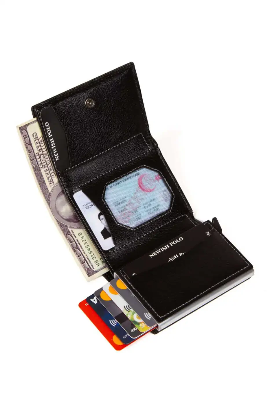 Şıklığı ve pratikliği bir araya getiren bu cüzdan, hem erkekler hem de kadınlar için mükemmel bir seçimdir. Dayanıklı deri malzemesi ve alüminyum mekanizması ile uzun yıllar kullanabileceğiniz bir aksesuardır.