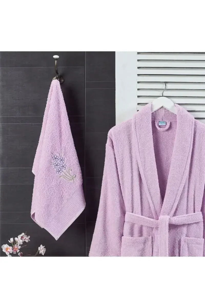 Leylak Bornoz Seti: Unisex, Havlulu, 2'li | Pamuklu Konfor