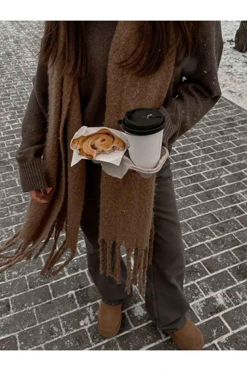 Unisex sharf, buklet sharf, jigarrang sharf, premium sharf, yumshoq sharf, qishki sharf, ayollar sharfi, erkaklar sharfi, zamonaviy sharf, issiq sharf