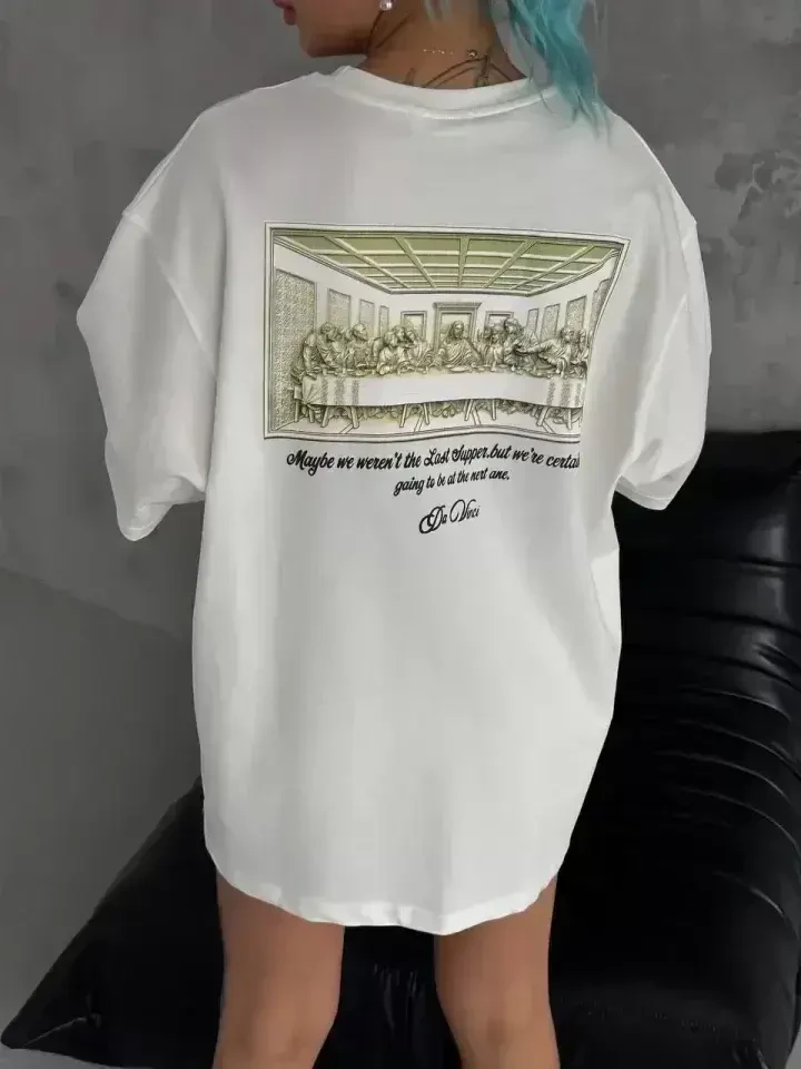 Unisex Printed Oversize T-Shirt - White is a stylish and comfortable option that is set to become an indispensable part of your wardrobe. Suitable for both women and men, this t-shirt captures today's trends with its modern oversize cut. Thanks to its white color, it easily adapts to any combination, allowing you to emphasize your elegance while not sacrificing your comfort. This piece, ideal for daily use, will accompany you when meeting friends, shopping or just relaxing at home. It offers long-lasting use thanks to its high-quality fabric. The print on the t-shirt reflects a unique design approach and adds a different dimension to your style. The quality of the print is resistant to fading or deformation after washing. The oversize cut offers comfortable use without restricting your freedom of movement. Thanks to different size options, it is possible for everyone to find a suitable size. Considering the model's measurements will give you an idea of how the t-shirt will look on you. The M/38 size on the model shows how the oversize cut looks. You can choose the most accurate size by comparing your own body measurements with the model's measurements. This t-shirt stands out not only for its comfort but also for its elegance. It can be easily combined with different bottom wear options. You can achieve a sporty look with jeans, or create a more stylish combination with skirts. You can also complete the t-shirt with your accessories to reflect your own style. Unisex Printed Oversize T-Shirt - White is a great gift option for yourself and your loved ones. Everyone who likes to dress stylishly and comfortably will love this t-shirt. This piece, which should definitely be in your wardrobe, can be worn in any season. You can use it alone in summer or combine it with a jacket or cardigan in winter. This t-shirt is not just a piece of clothing, but also a lifestyle. It will make you feel good, reflect your style and make you stand out in any environment. Let your style speak with Unisex Printed Oversize T-Shirt - White and make a difference! With its high-quality print and fabric, it is a candidate to be your wardrobe's favorite piece for many years. This t-shirt, which offers comfort and elegance together, will accompany you in every moment and complete your style. Order now and enjoy this unique t-shirt!