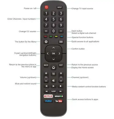 - Совместим со всеми моделями смарт-телевизоров Hisense 4K LED HD UHD.