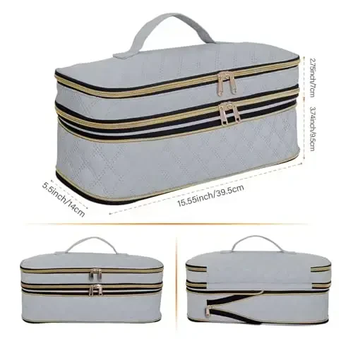 This portable double-layer hair dryer travel case is made of high-quality polyester fabric. The elegant diamond pattern makes the storage bag more beautiful and stylish. The interior is soft and scratch-resistant for hair dryers and accessories. The outer layer is scratch-resistant, dust-resistant, and long-lasting. It measures 15.5" long * 5.5" wide * 6.49" high. This hair tools travel case features a handle design for easy travel and portability. It is the perfect size for home and travel use. Its stylish appearance also makes it the best gift for girlfriends, daughters, wives, and friends on birthdays, anniversaries, Valentine's Day, Mother's Day, Thanksgiving, Christmas, and New Year.