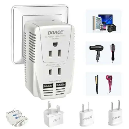 Experience the Power of Your Hair Dryer, Straightener, and Curling Iron Anywhere with the DoAce C11 Travel Voltage Converter!