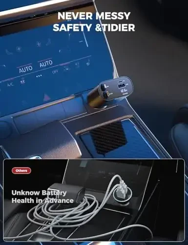The SUPERONE Ret retractable Car Charger eliminates the need for constant searching for charging cables, offering a 4-in-1 solution to meet all your needs. Its fast charging technology and compact design ensure comfort and safety during your journeys.