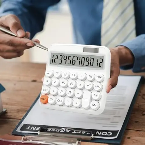 **UPIHO White Calculator, Standard Calculator 12 Digit with Large LCD Display and Big Buttons, White Office Supplies and Desk Accessories, Cute Calculator for Home, Office, School, Class and Business****Product Features:*** **Large LCD Display:** A large, high-contrast LCD screen for a clear and easy-to-read user experience.* **12-Digit Capacity:** Ample capacity to handle complex calculations and large numbers.* **Big Buttons:** Large, ergonomic buttons that provide comfortable and accurate input for your fingers.* **Dual Power Source:** Powered by both solar energy and battery for long-lasting usage.* **Auto Power-Off:** Automatically turns off when not in use to save power.* **Memory Functions:** Memory functions to store and recall your calculations.* **Ergonomic Design:** An ergonomic design that fits comfortably in your hand and prevents fatigue even during prolonged use.* **Versatile Applications:** Suitable for use in various settings, including home, office, school, classroom, and business.**Why Choose the UPIHO White Calculator?*** High-quality construction for reliable and accurate calculations.* Easy-to-use and intuitive interface.* Ergonomic design for comfortable and efficient use.* Chic and modern white color that will brighten up your workspace.* A perfect tool for both professional and personal needs.