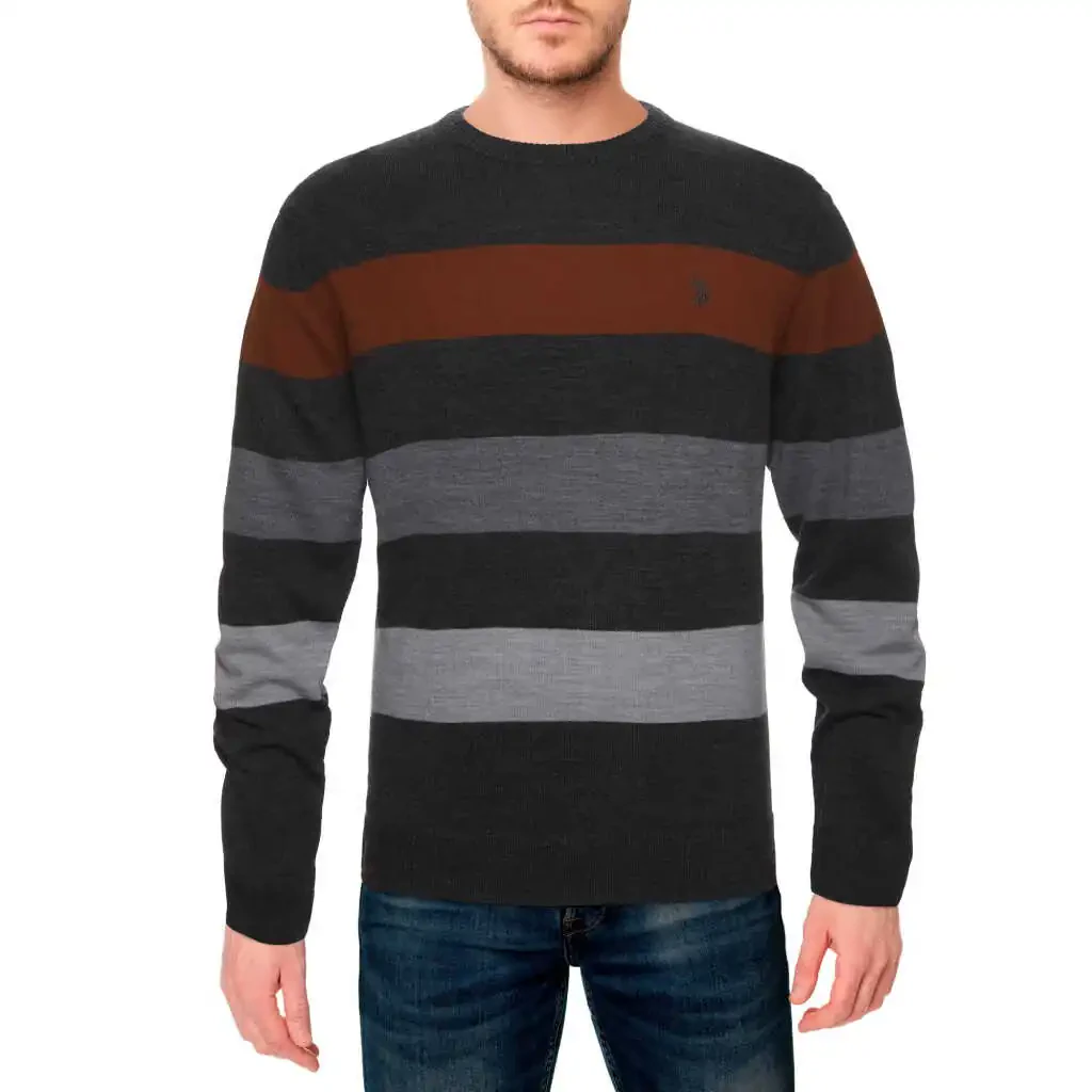 The U.S. Polo Assn. Men's Color Block Striped Crew Neck Sweater is poised to become an indispensable part of your wardrobe, combining elegance and comfort. Showcase your style in any setting with the sophisticated tone of Charcoal Heather and the eye-catching color block striped design. This sweater is crafted from high-quality acrylic yarn, ensuring a soft and warm feel throughout the day. The crew neck offers a modern and comfortable look, while the color-gradient stripes on the sweater add a dynamic touch. This exclusive U.S. Polo Assn. design is an excellent choice for both everyday wear and special occasions. It can be easily paired with jeans, chinos, or canvas pants to create different styles. The sweater's color block stripes provide a transition from dark to light, creating visual depth and adding a modern touch to your outfit. It keeps you warm in cold weather while ensuring you don't compromise on style. This sweater not only offers a stylish appearance but is also designed for long-lasting use. High-quality acrylic yarn helps the sweater maintain its shape and resist wear and tear. Thanks to its easy care, it stays as good as new for a long time. This sweater, produced with U.S. Polo Assn. quality, is a must-have in the wardrobes of stylish men. Its Charcoal Heather color and color block striped design always ensure you look trendy and modern. Whether you wear it alone or under a jacket or coat, this sweater always offers a striking and stylish appearance. If you want to feel both comfortable and stylish, the U.S. Polo Assn. Men's Color Block Striped Crew Neck Sweater is for you.