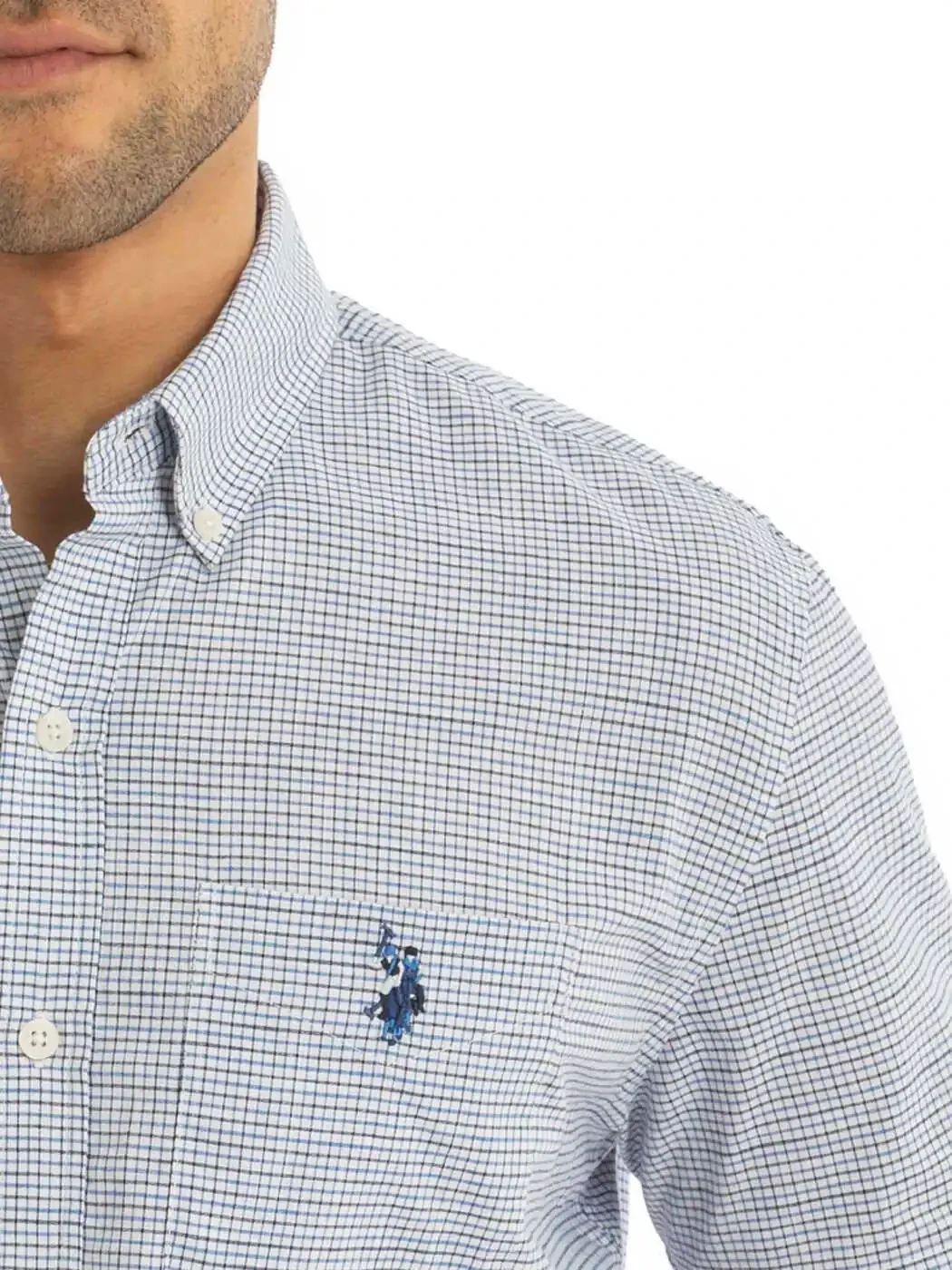 Рубашка U.S. Polo Assn.Мужская рубашка с коротким рукавомРубашка с воротником на пуговицахМужская рубашкаЛетняя мужская рубашкаРубашка стандартного крояРубашка из смесового хлопкаПовседневная мужская рубашкаРубашка с вышитым логотипомКомфортная мужская рубашка