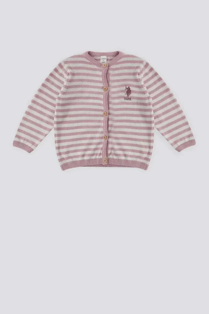Bebeğinizin rahatlığı ve şıklığı için U.S. Polo Assn Pembe Çizgili Düğmeli Bebek Bebek Hırka'yı seçin!