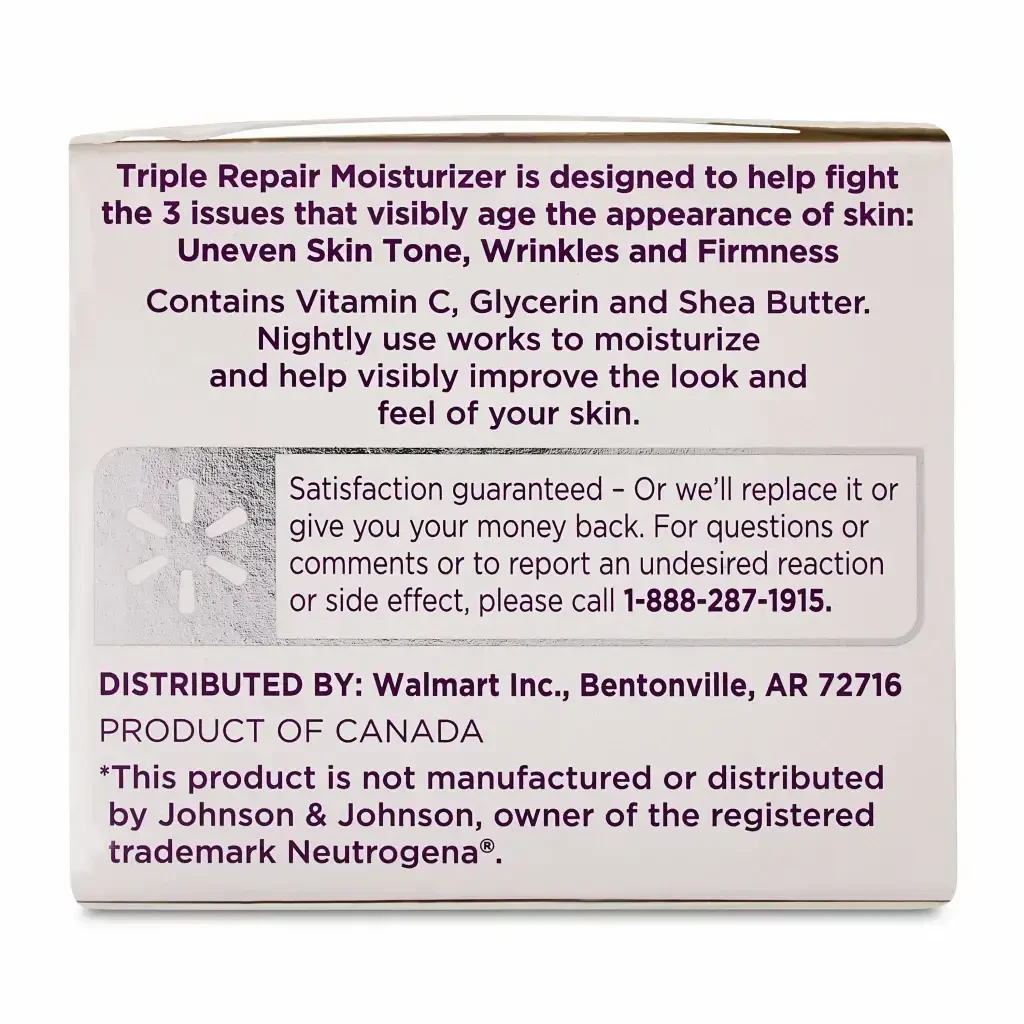 Equate Beauty Triple Repair Moisturizer Ночной крем, все типы кожи, сухость, 1,7 унции. Этот ночной крем с витамином С, глицерином и маслом ши предназначен для борьбы с тремя наиболее распространенными признаками старения: неровный тон кожи, морщины и дряблость. Он работает в течение ночи, делая кожу более мягкой и молодой, что делает его идеальным для вашего ночного ухода. Для достижения наилучших результатов наносите этот крем на лицо и шею каждую ночь после очищения.