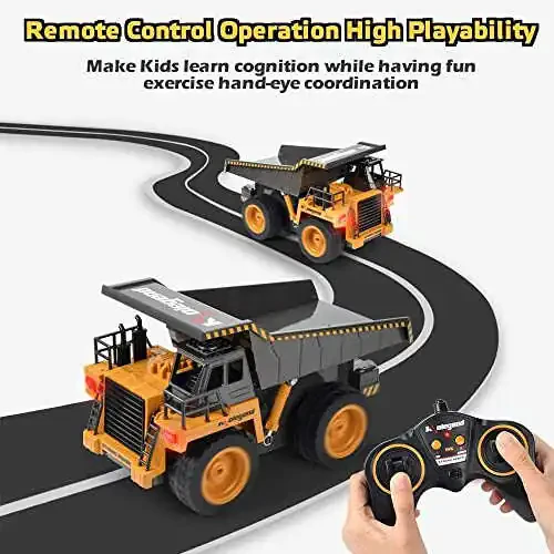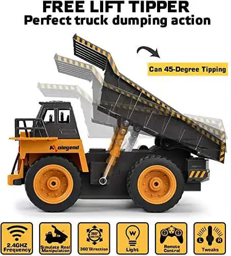 remote control dump truck, rc truck, construction vehicle toy, rechargeable battery, kids toys, boys toys, girls toys, kolegend