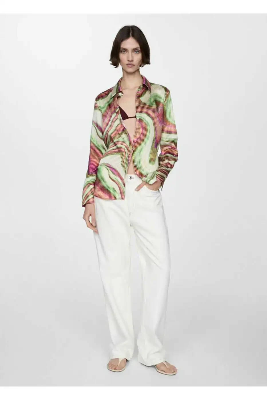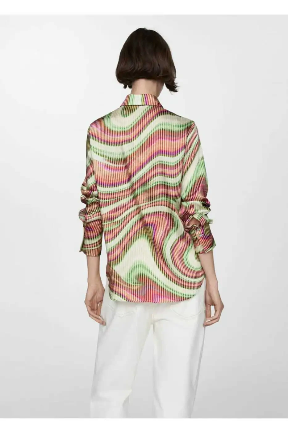 Рубашка из сатина с узором, Рубашка с длинным рукавом, Фестивальный сезон, Узорчатый дизайн, Застежка на пуговицы спереди, Ткань из сатина, 100% полиэстер