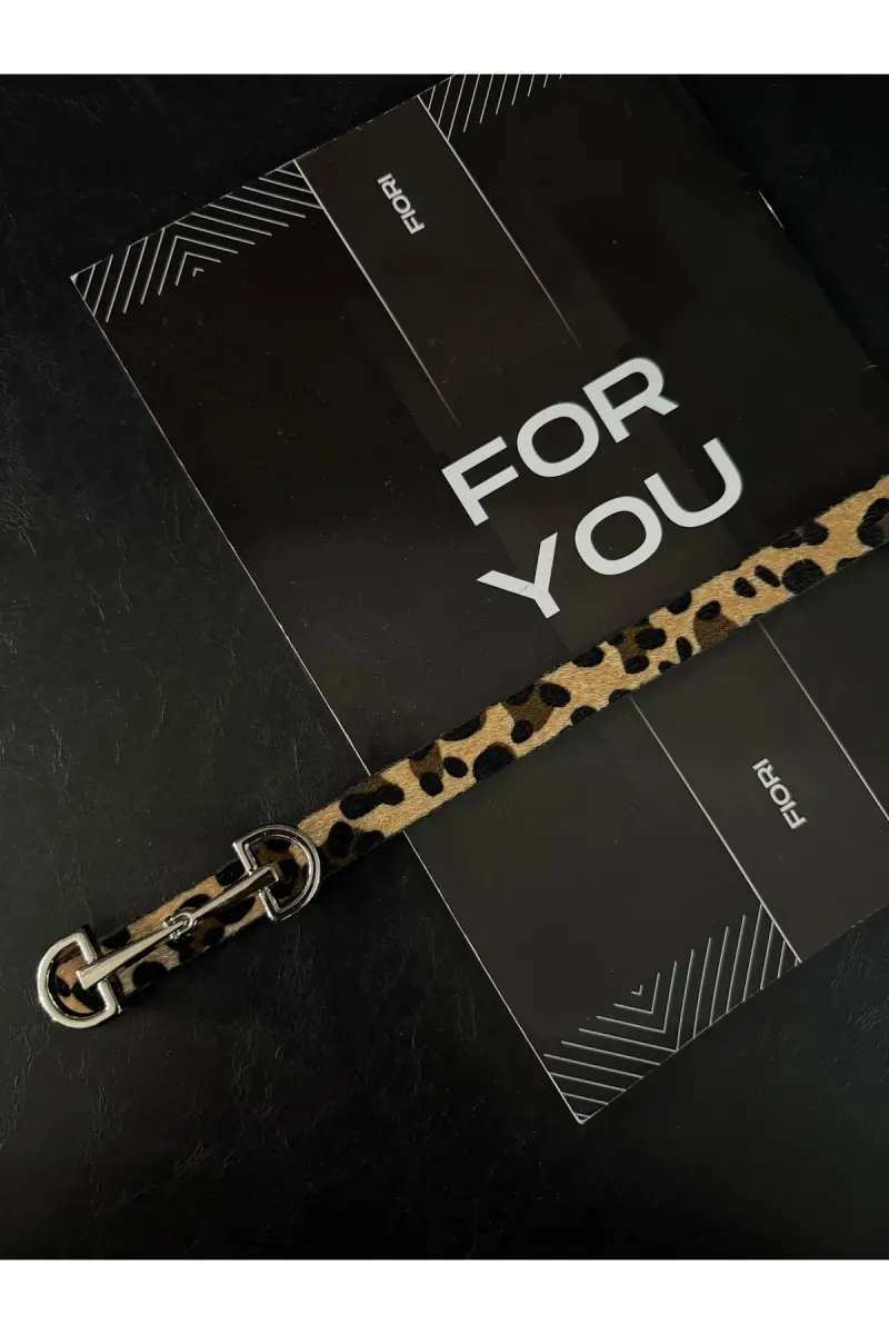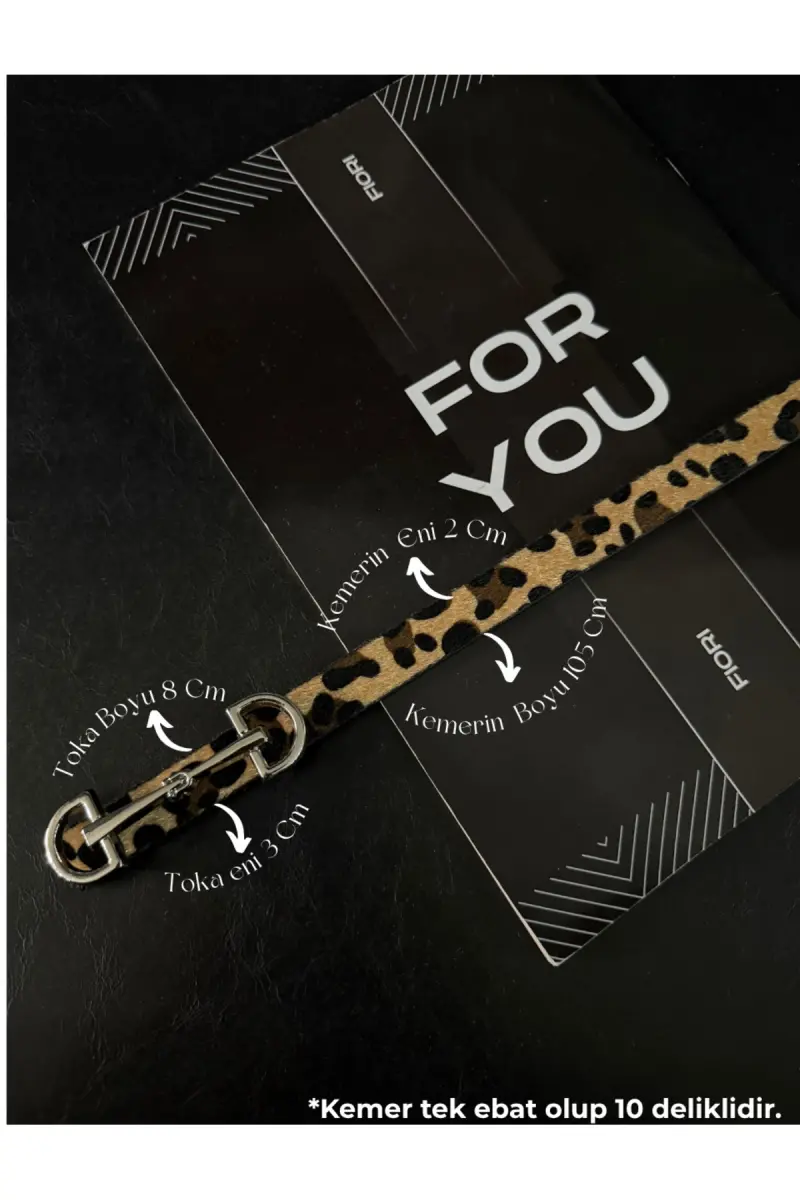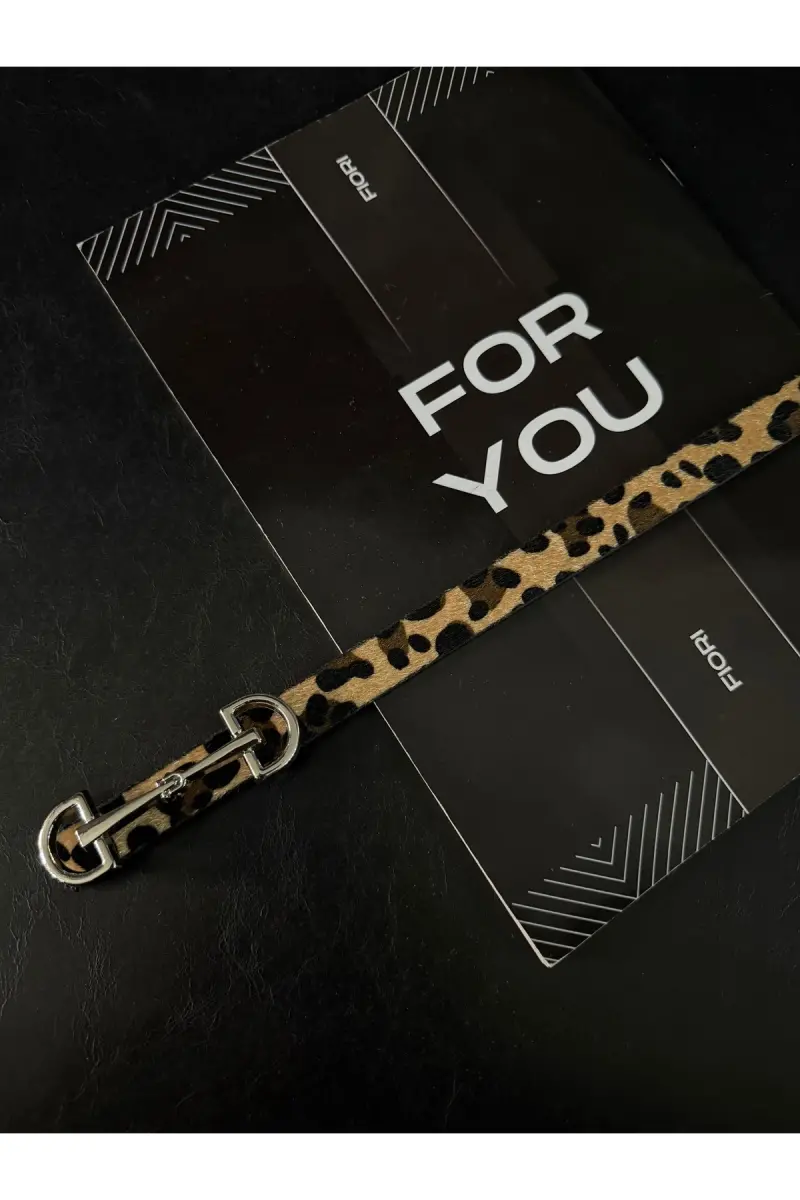 Uzun Gümüş Tokalı Ince Kadın Kemeri, Ceket Kemeri, Gömlek Kemeri, Elbise Kemeri-Leopar