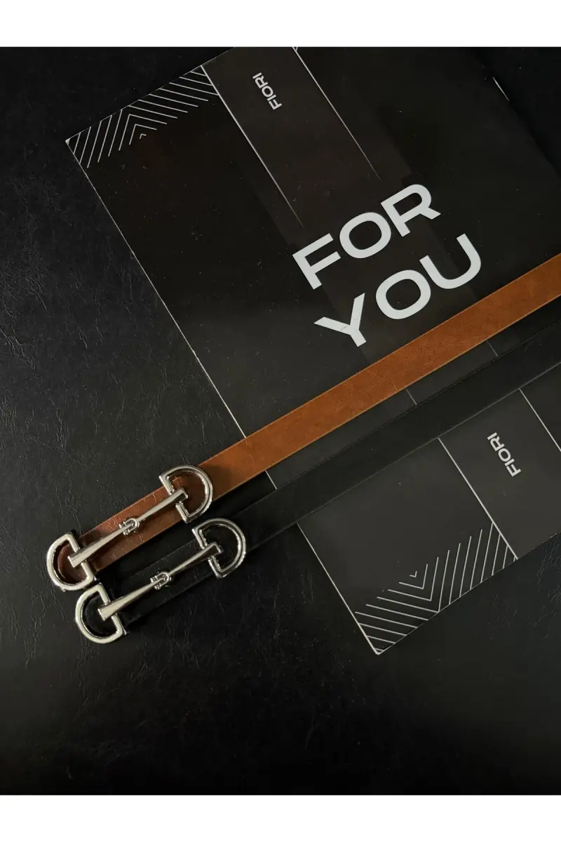 Uzun Gümüş Tokalı Ince Kadın Kemeri, Ceket Kemeri, Gömlek Kemeri, Elbise Kemeri-Siyah