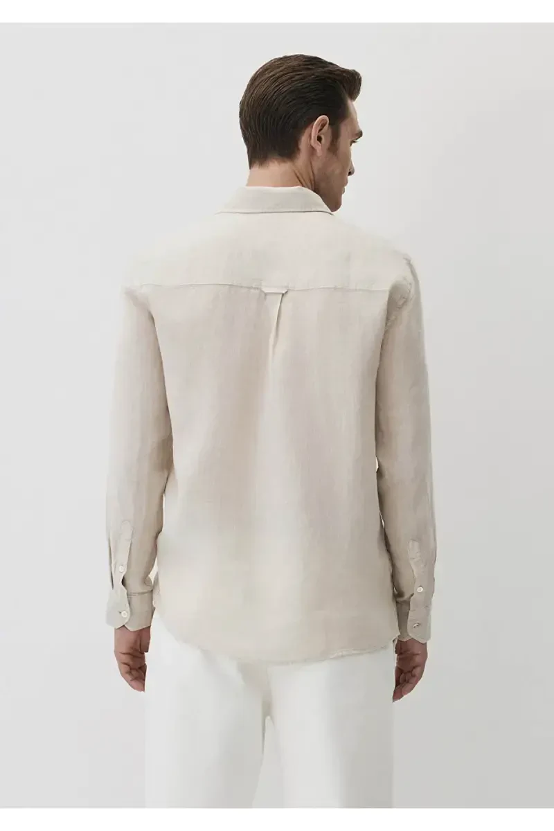 uzun qo'lli ko'ylak, bej ko'ylak, erkaklar ko'ylagi, paxta ko'ylak, klassik bichim, tekis ko'ylak, erkaklar kiyimi, bej rang, uzun yengli, paxta