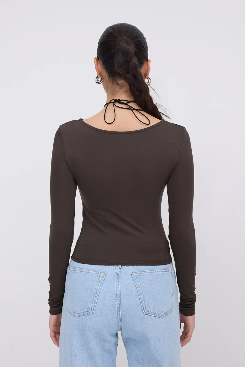Uzun Kollu Basic Bluz B1605-S4-Z.Kahve