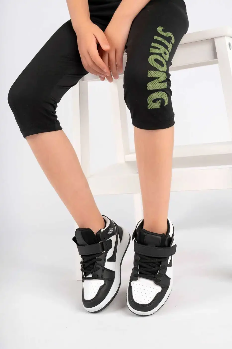 Uzun Oyoqli Unisex Oq-Qora Bolalar Sport Krossovkalari